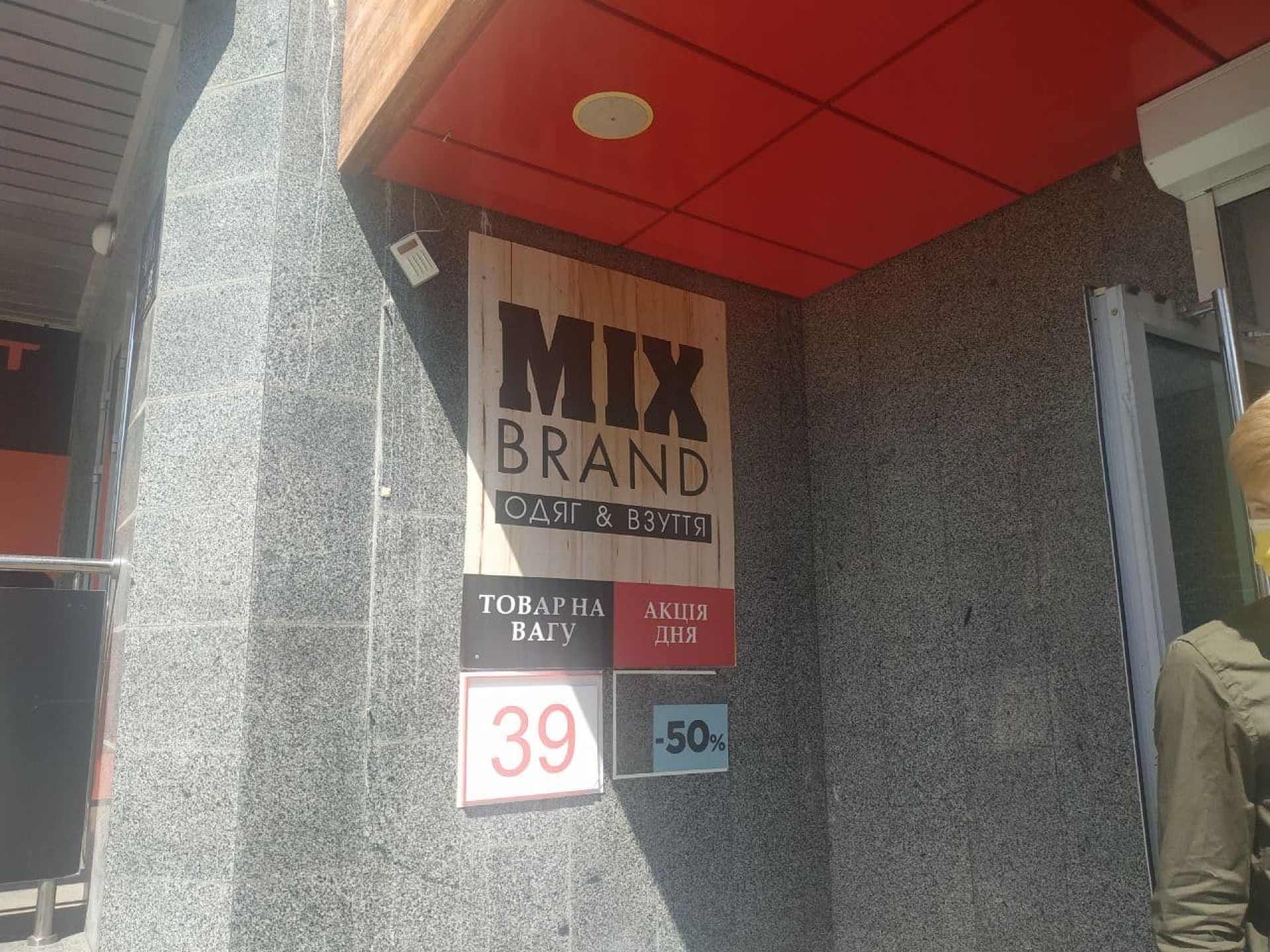 Магазин Mix brand розташований на вулиці Митрополита Шептицького. В ньому одяг продають на вагу, або ж за фіксованою ціною. Біля входу є 12 шафок для речей. В залі є контрольні ваги.