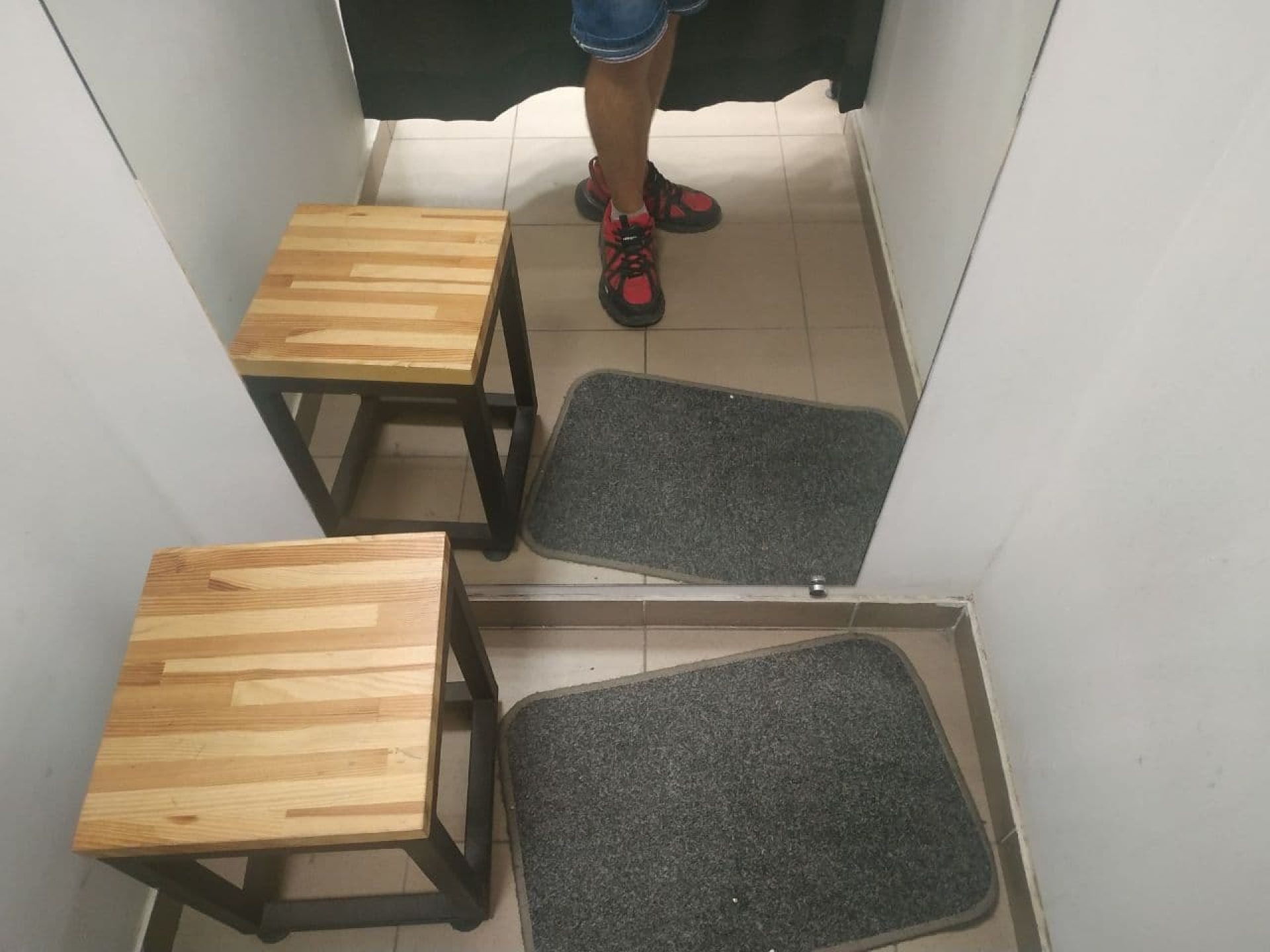 Всередині чисто, є дзеркало, килимок, вішаки для одягу та навіть стілець і лопатка для взуття, чого не було в попередніх магазинах.