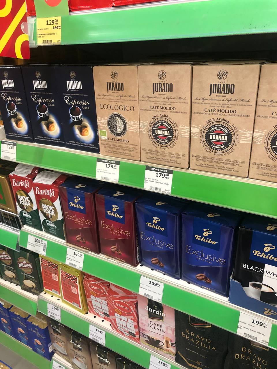500г чаю Qualitea зі Шрі-Ланки обійдеться вам у 519 гривень, а 25 пакетиків Hillway – 43,99 гривень. А ось 250г іспанської кави Jurado – 179 гривень чи колумбійської кави Tchibo – 159 гривень.