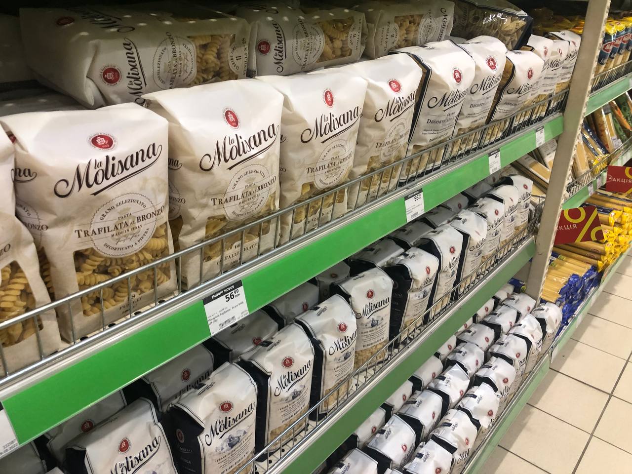 - 0,5кг макаронів La Molisana – 56,99 гривень;
