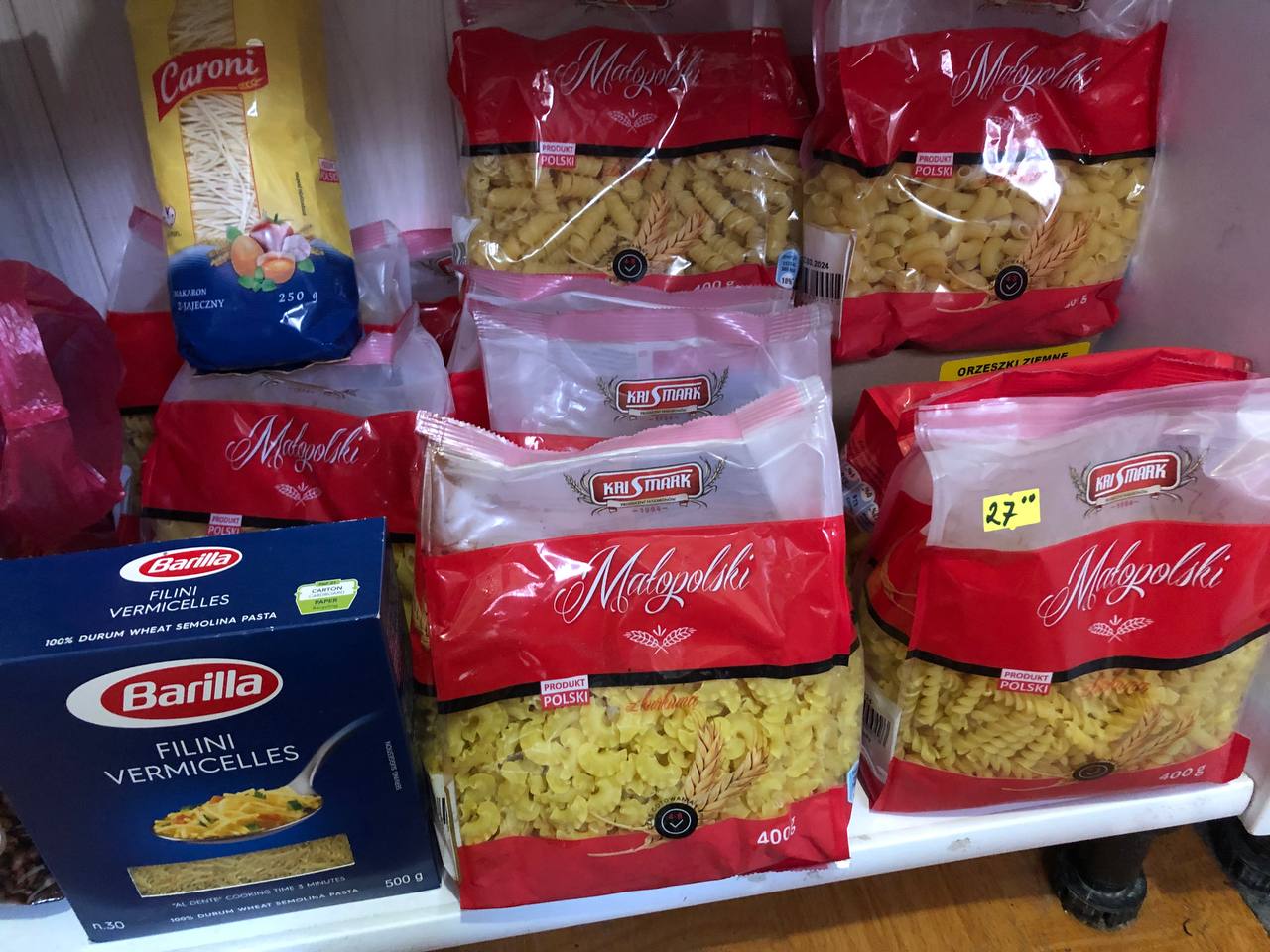 Щодо макарон, то найчастіше вони продаються по 0,45кг, 0,5кг, а також по 1кг. Зі слів продавчині Марини, зазвичай їх привозять з Польщі, але виробники бувають різними.