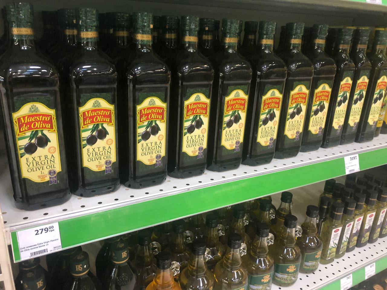 Літр олії оливкової Extra Virgin Maestro de Oliva – 279 гривень, а 0,5л олії Mytholio – 189 гривень.