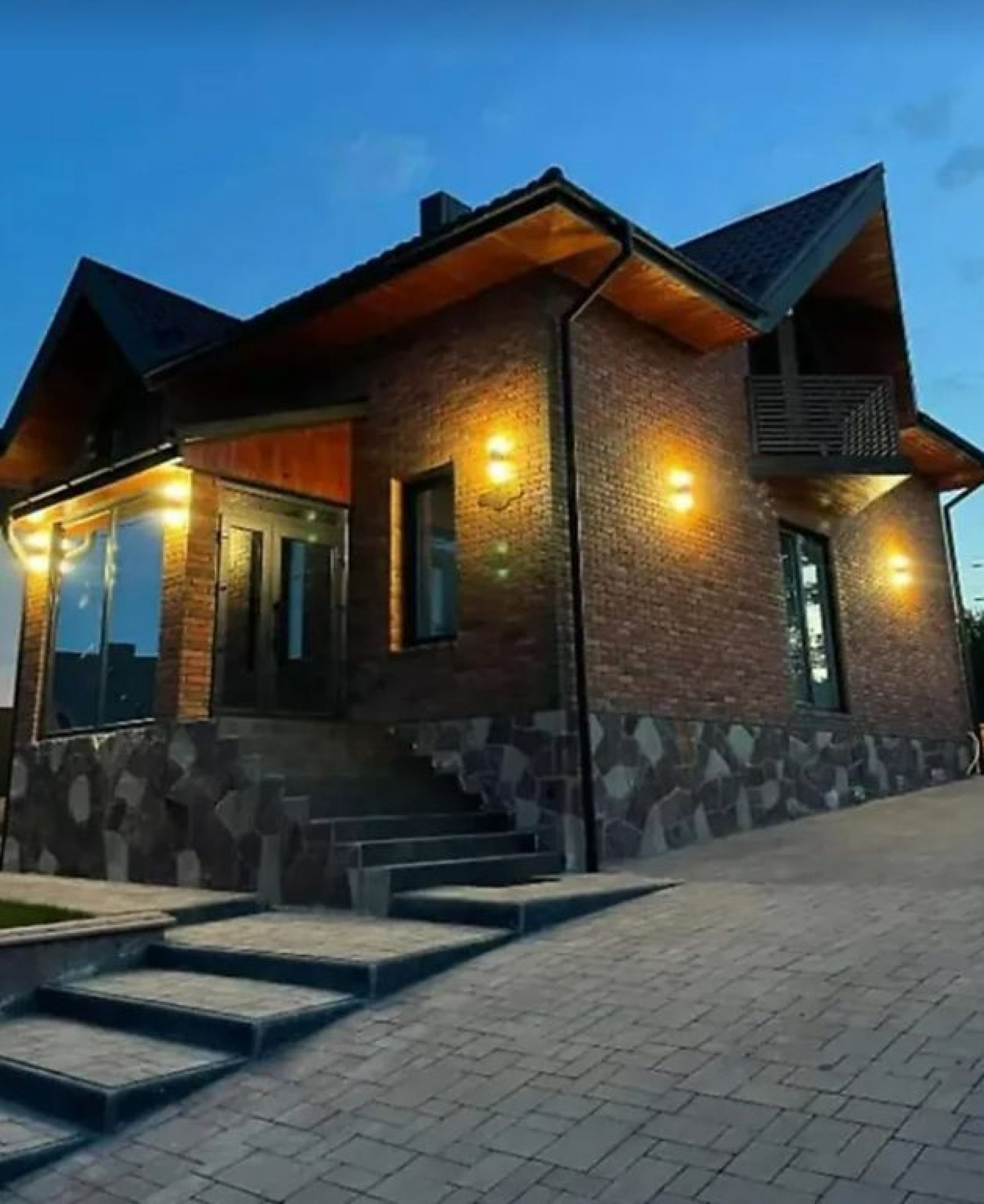 74 880 грн за місяць – двоповерховий будинок з гаражем у Петриках. Він з цегли, з індивідуальним опаленням, теплою підлогою, безперебійними джерелами живлення. Загальна площа — 180 м2. В оголошенні повідомляють, що у будинку зручне планування та великий двір.