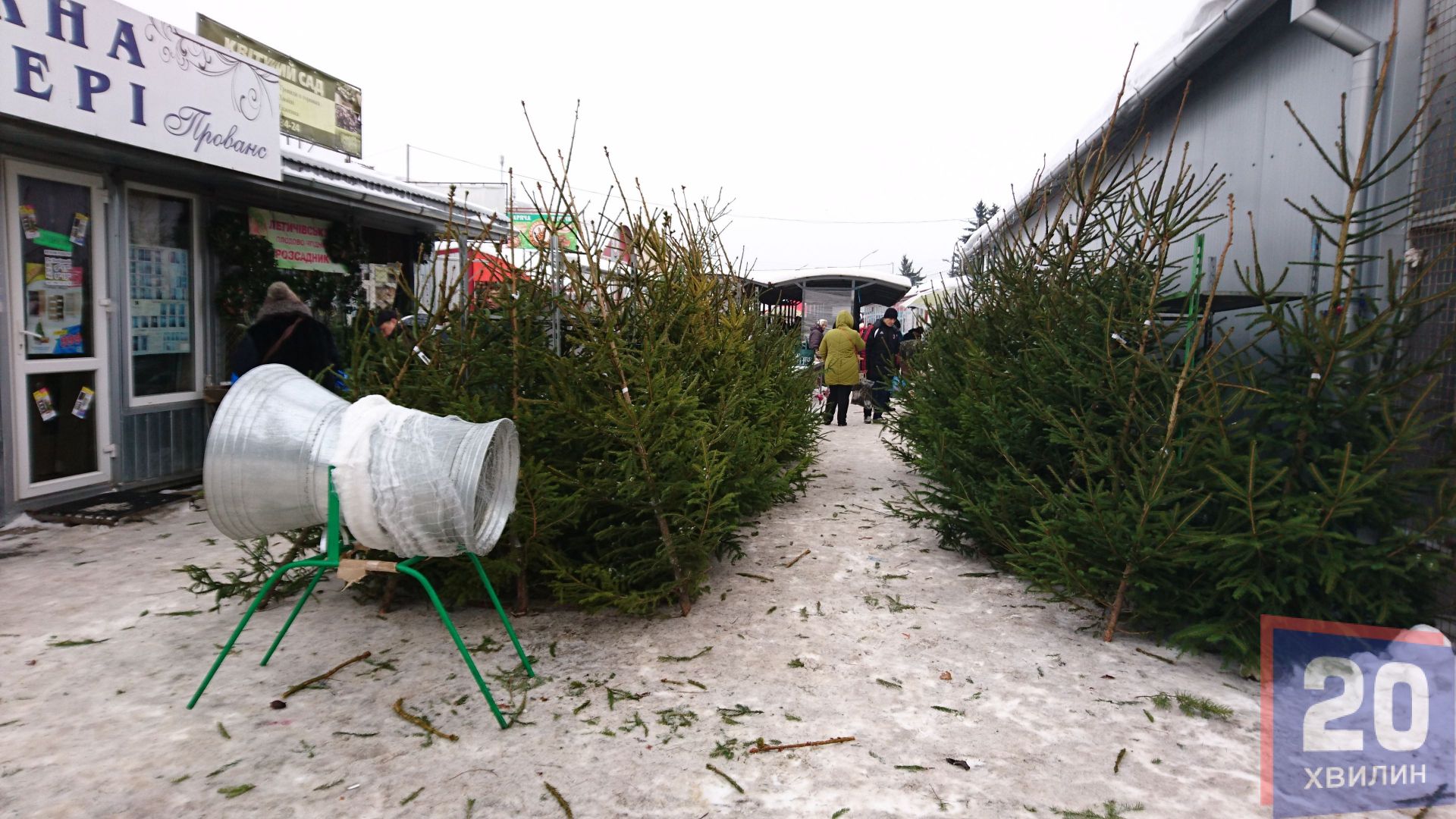 - На продуктовому ринку поруч з Центральним продають "живі" метрові чіповані ялинки. Вартість від 100 грн і до півтисячі.