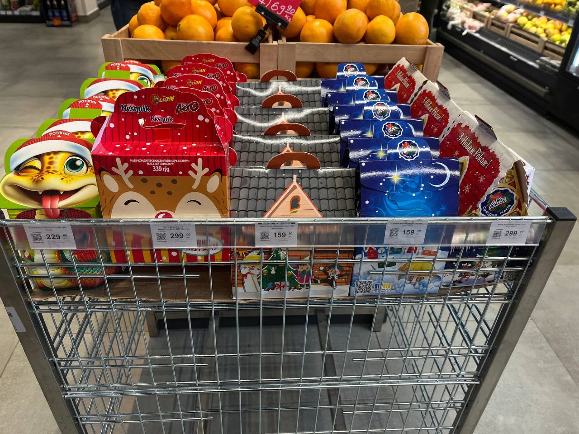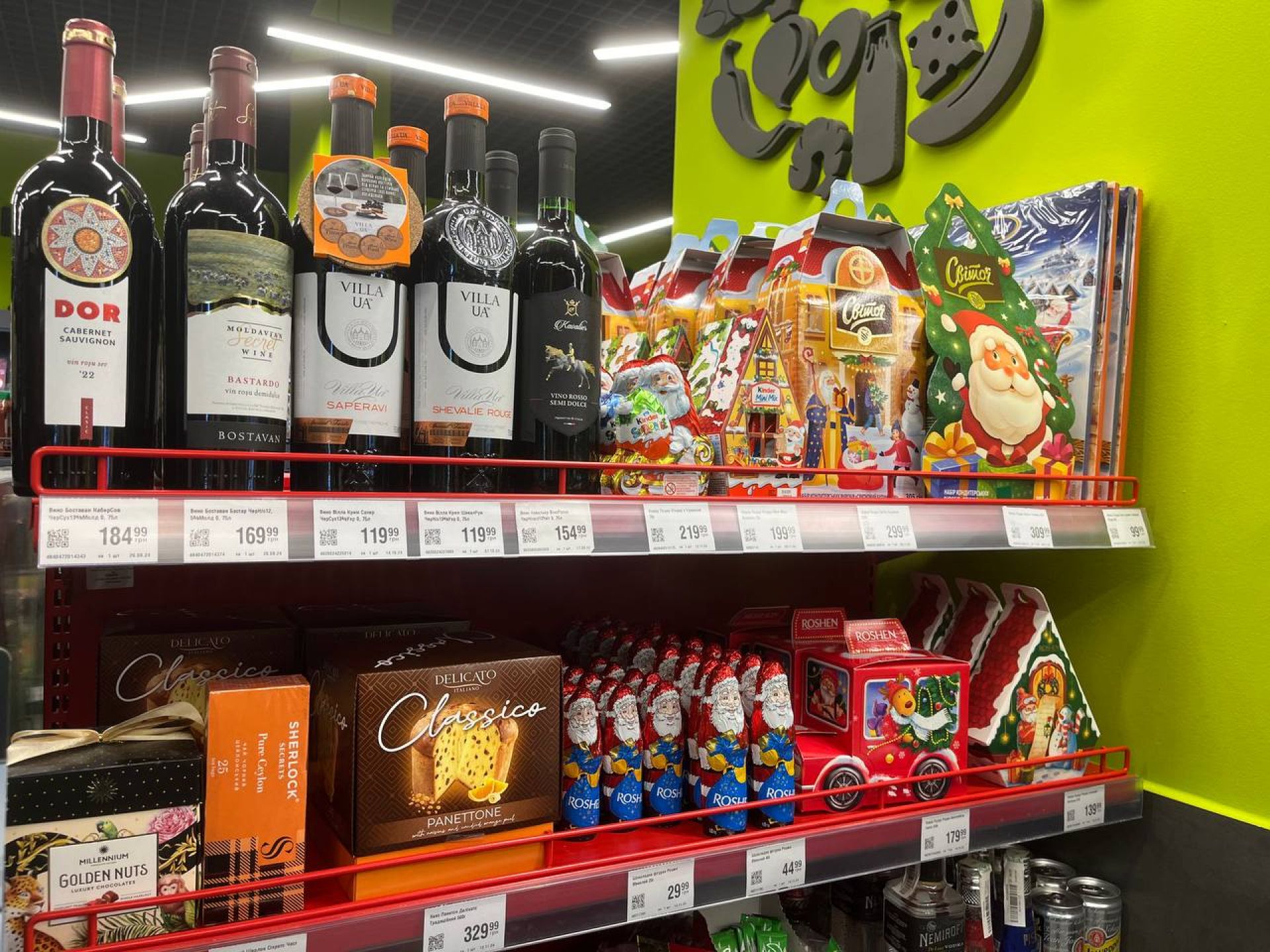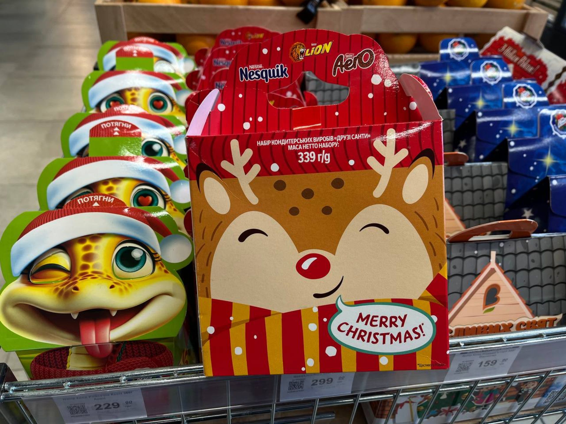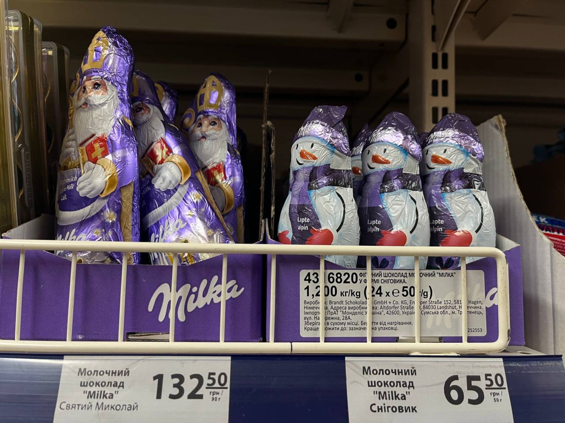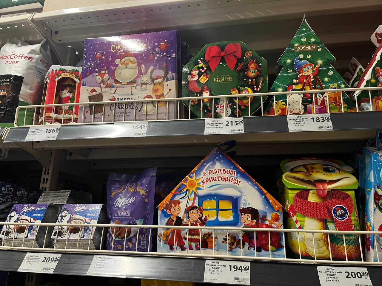У магазині є чи не найбільша кількість різдвяних солодощів. Вони займають одразу кілька стендів. Всі різної форми, а також на будь-який гаманець. Наприклад:
