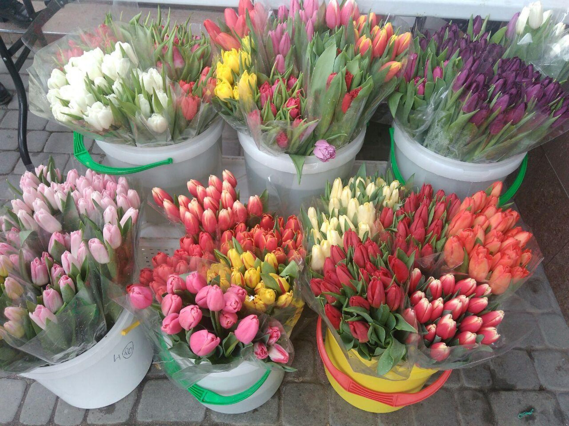 Хтось продає тюльпани по 15 гривень за квітку, а хтось – по 30. Продавці пояснюють, що дорожчі квіти привезли з Польщі. Також запевняють, що вистачить усім, тому спішити не варто.
