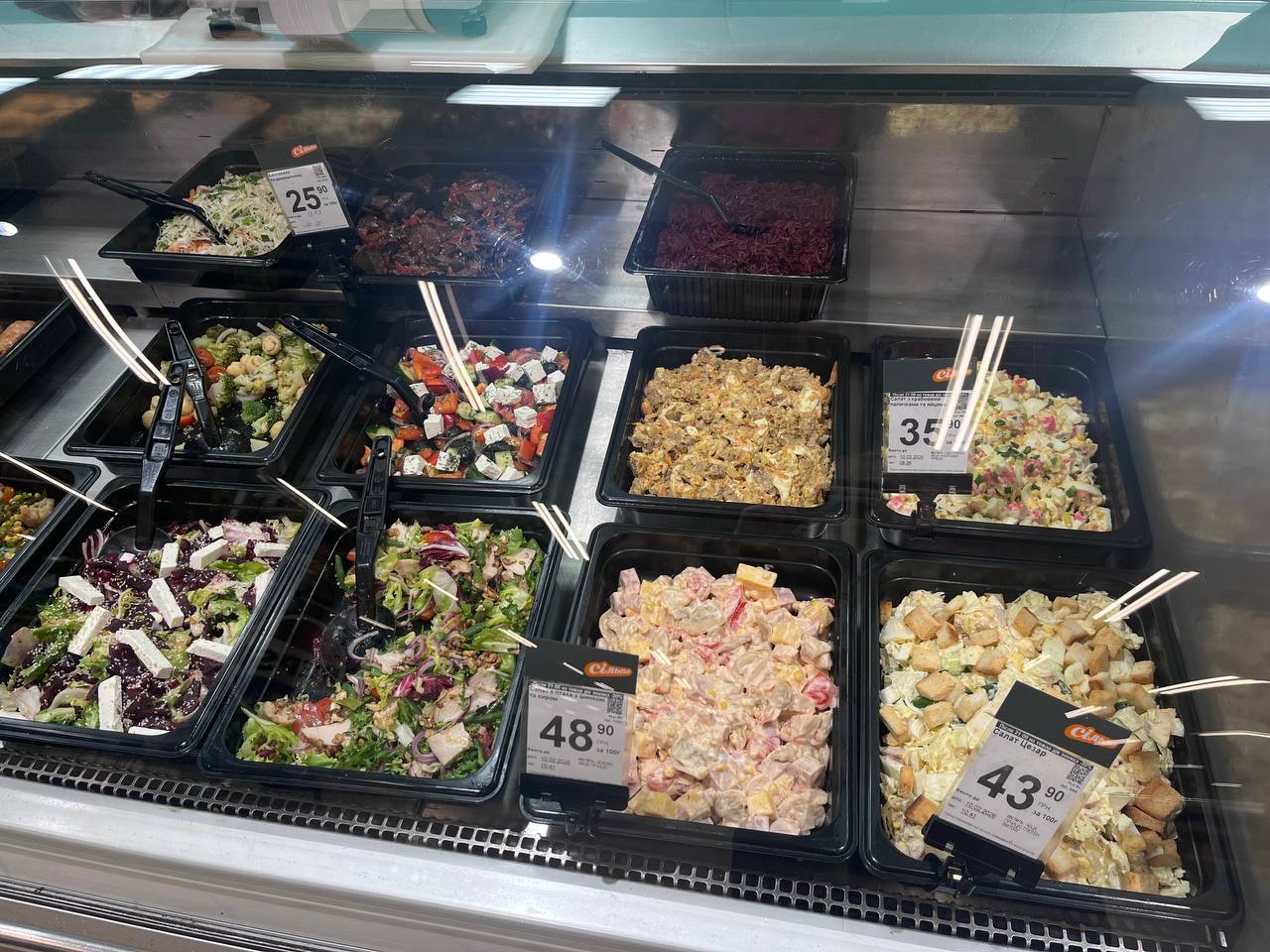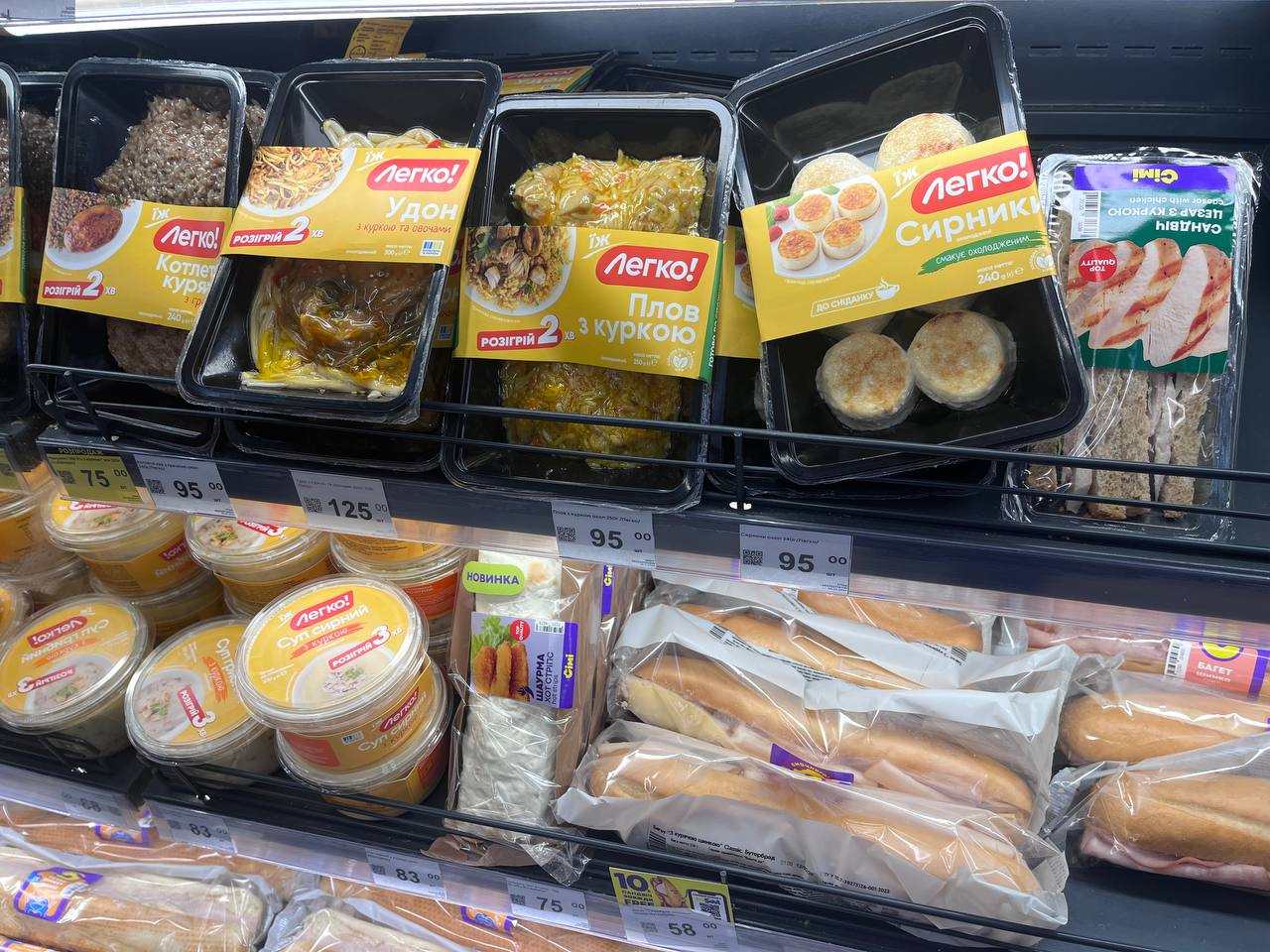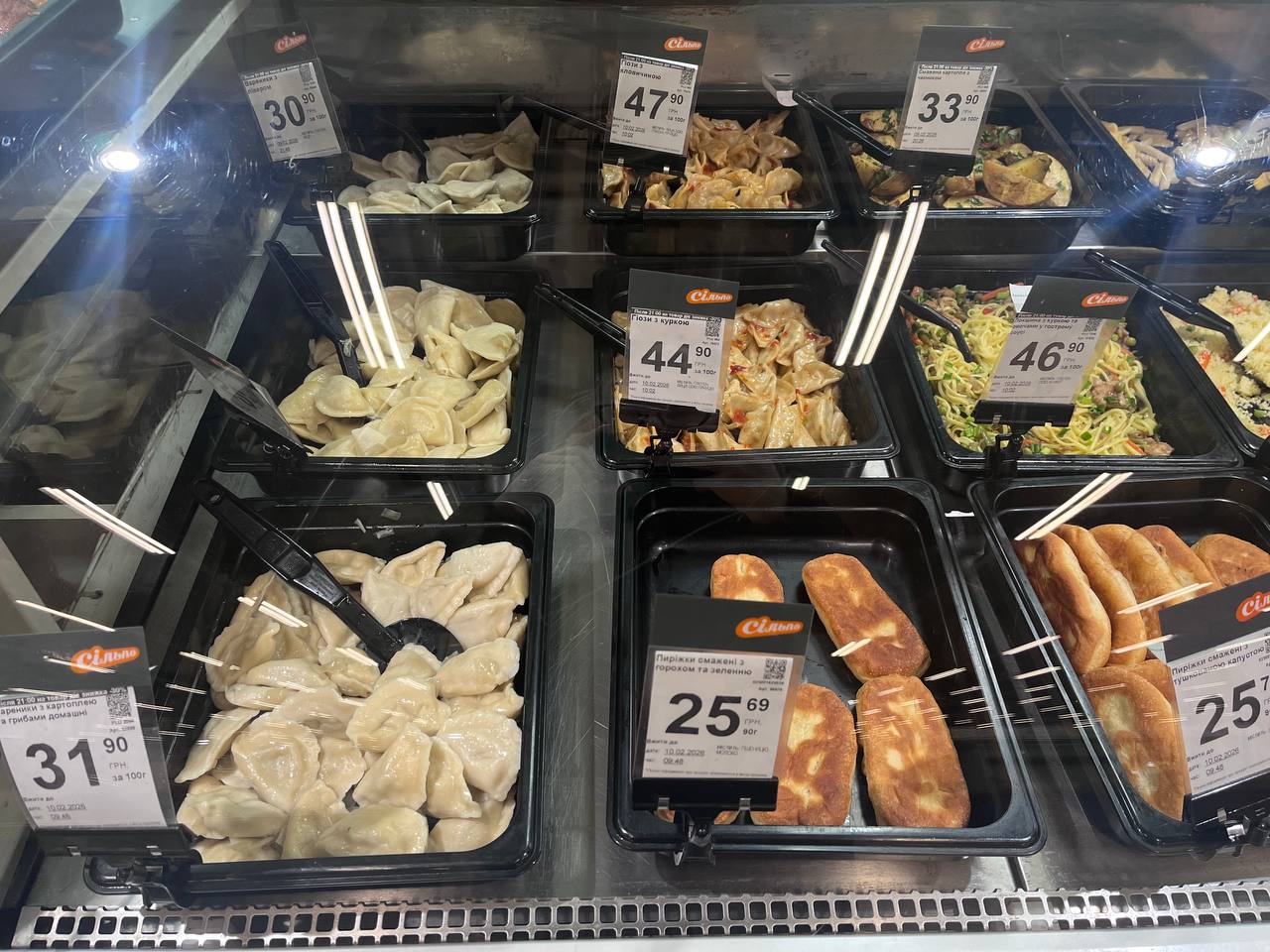 У супермаркетах мережі «Сільпо» є окремий відділ готових страв власного приготування. На вітрині вказані ціни за 100 грамів. У продажу є салати, м’ясні та рибні страви, овочі-гриль, а також різноманітні гарніри – гречка, макарони, картопля, плов тощо.
