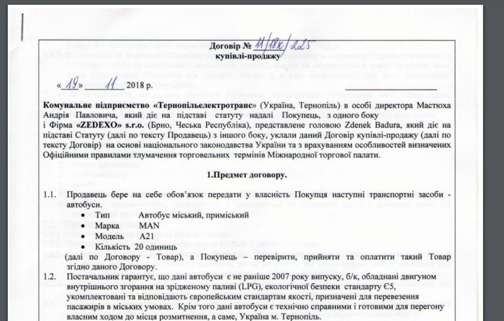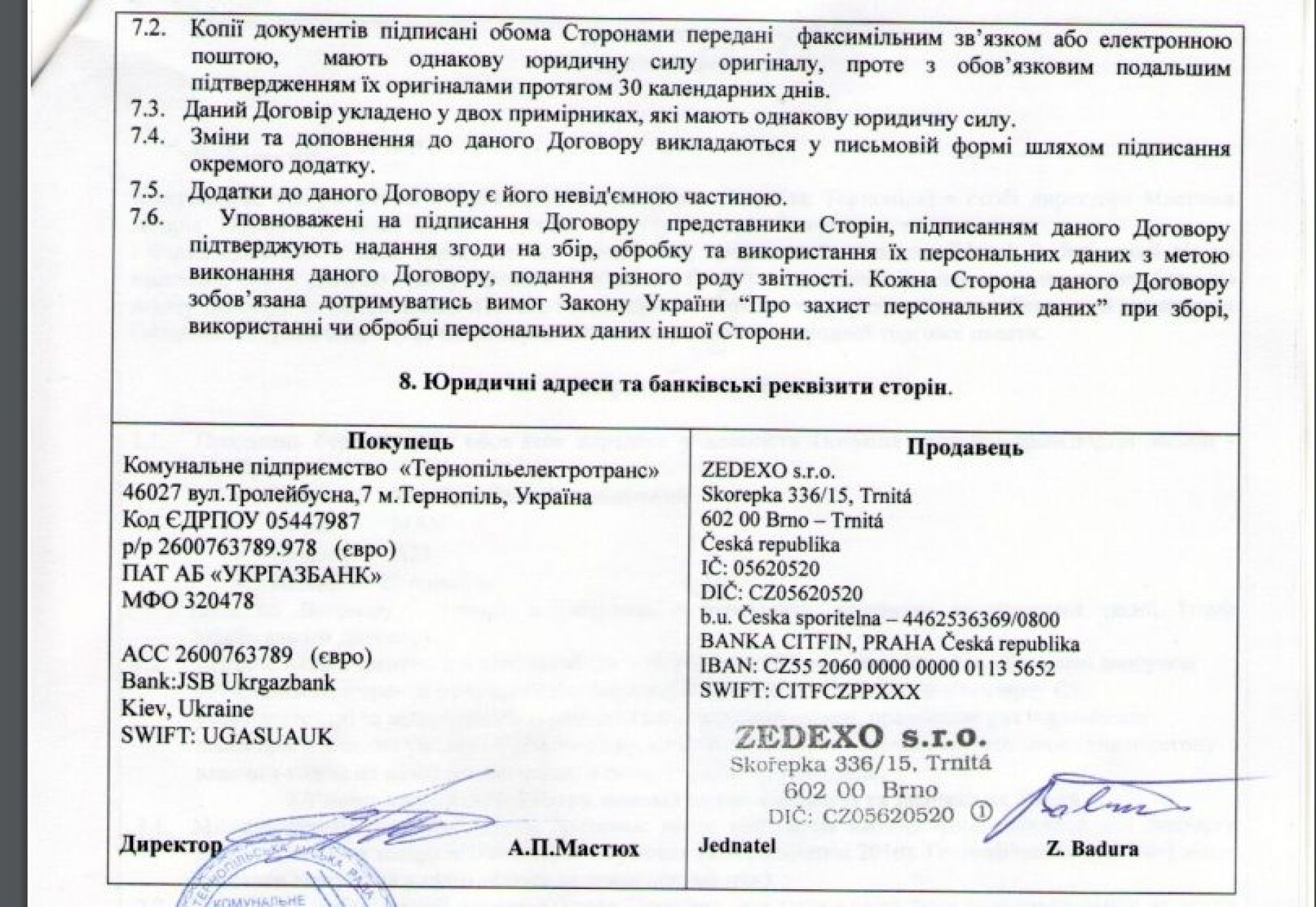 - Договір купівлі-продажу КП "Тернопільелектротранс" підписало з чеською фірмою ZEDEXO s.r.o вранці 19 листопада.