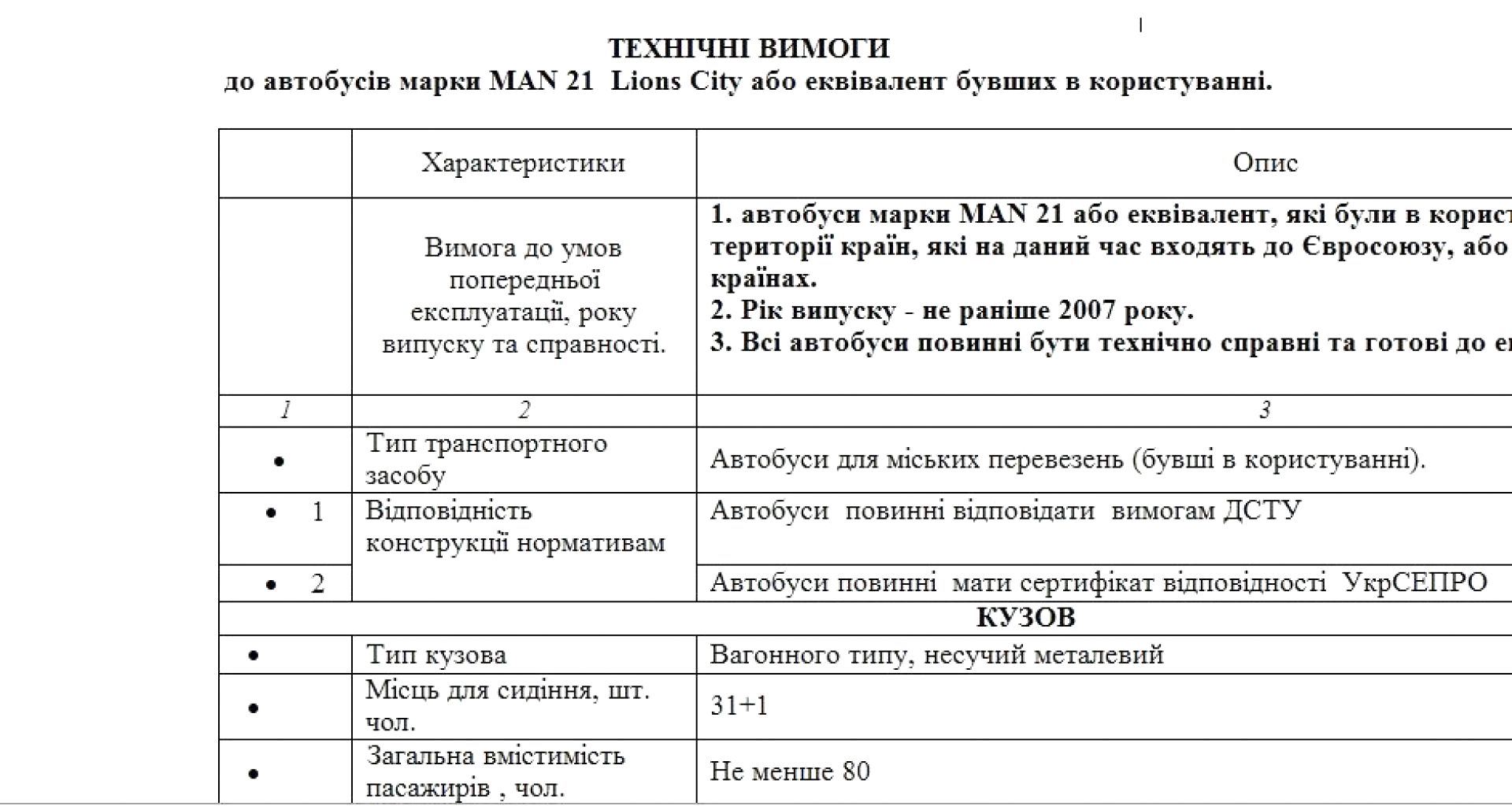 В одному із додатків є і технічні характеристики автобусів MAN, які збирається купити місто.