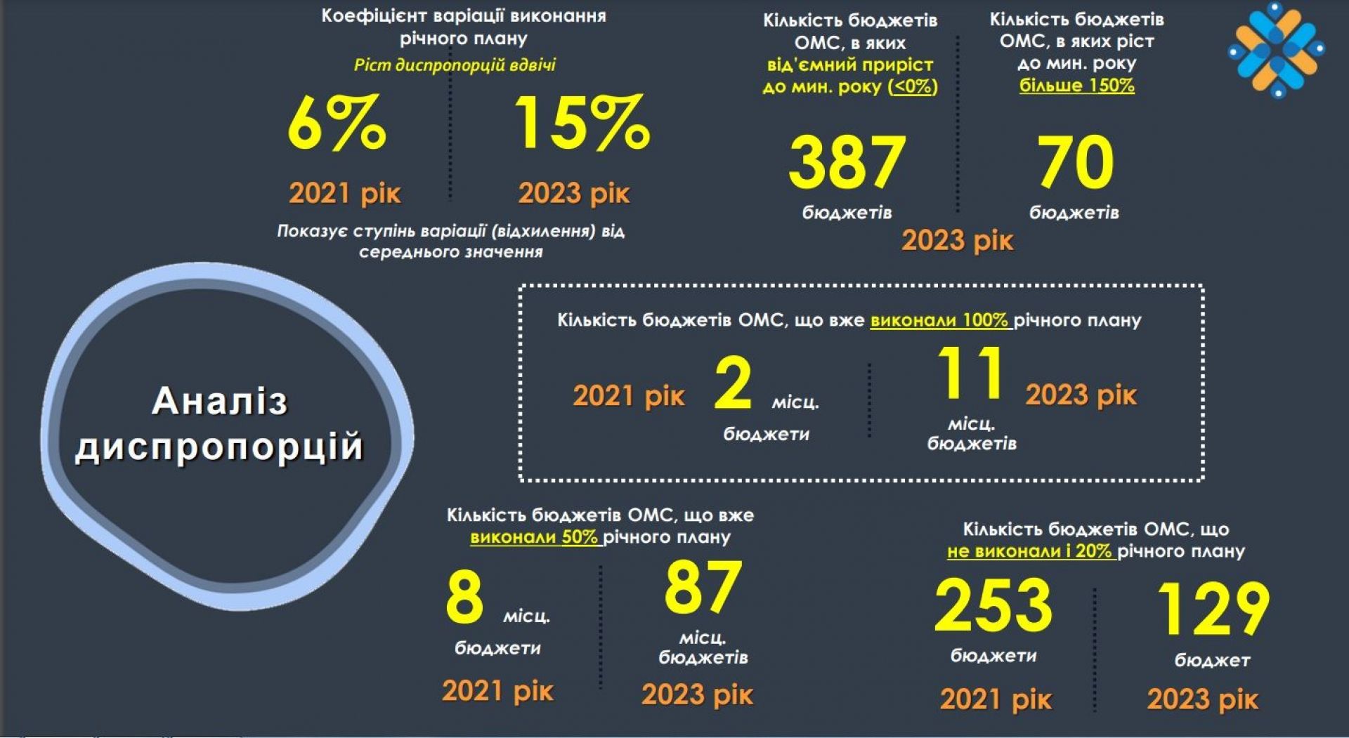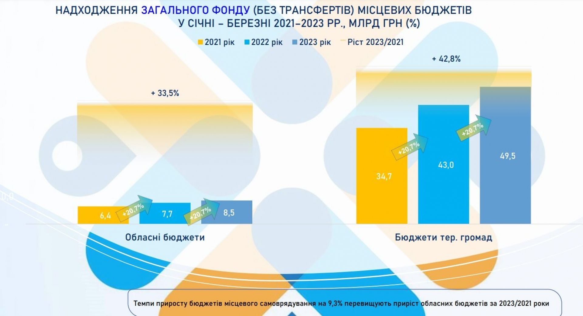 В Офісі Конгресу проаналізували 1 582 місцевих бюджетів, які мають прямі міжбюджетні відносини, з них 24 обласних, бюджет міста Києва, 119 районних бюджетів та 1 438 бюджетів територіальних громад. Всього в Україні станом на 1 квітня 2023 року 1 950 місцевих бюджетів, повідомив В’ячеслав Негода, який свого часу головував у Тернополі.