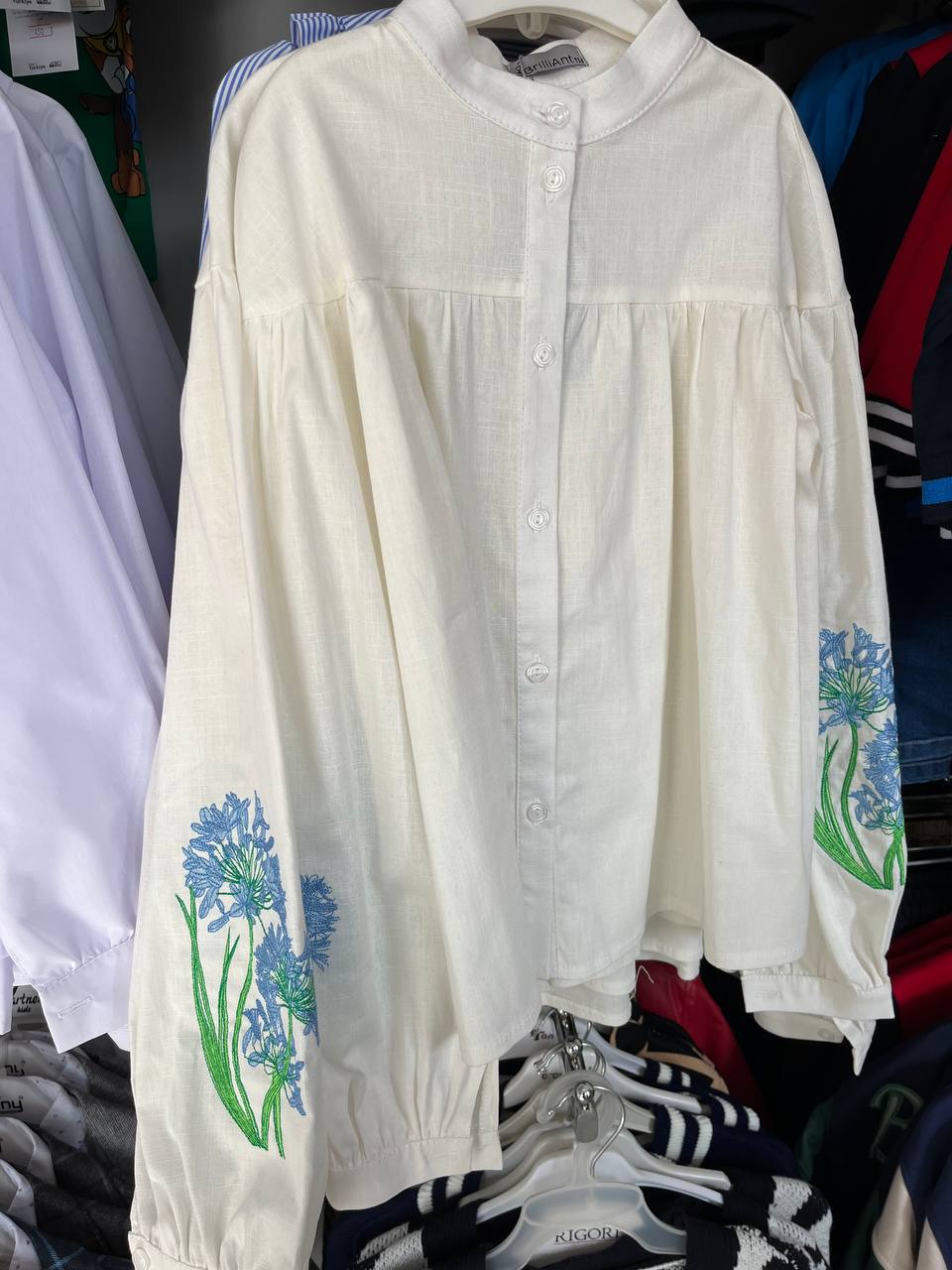 — Ціни дійсно зросли, якщо порівнювати з тими, що були у 2022 році. Чим новіша та сучасніша модель одягу – ціна вища. Є кілька комплектів з минулого року, але поки своїх покупців вони так і не знайшли. Можливо батьки і купили б, але дітям не подобається. Загалом ціни на готові комплекти форми зросли від 200 до 600 гривень. Традиційні кольори для форми – синій, чорний, сірий та клітинка. Я так дивлюся, що купують більше сірий та синій. Також деякі батьки питають за принт «гусяча лапка», подобається він їм, — зізнається продавчиня Олена. — Але, якщо купують окремо блузки, то переважно беруть одну вишиванку, а іншу – звичайну біленьку кофтинку.