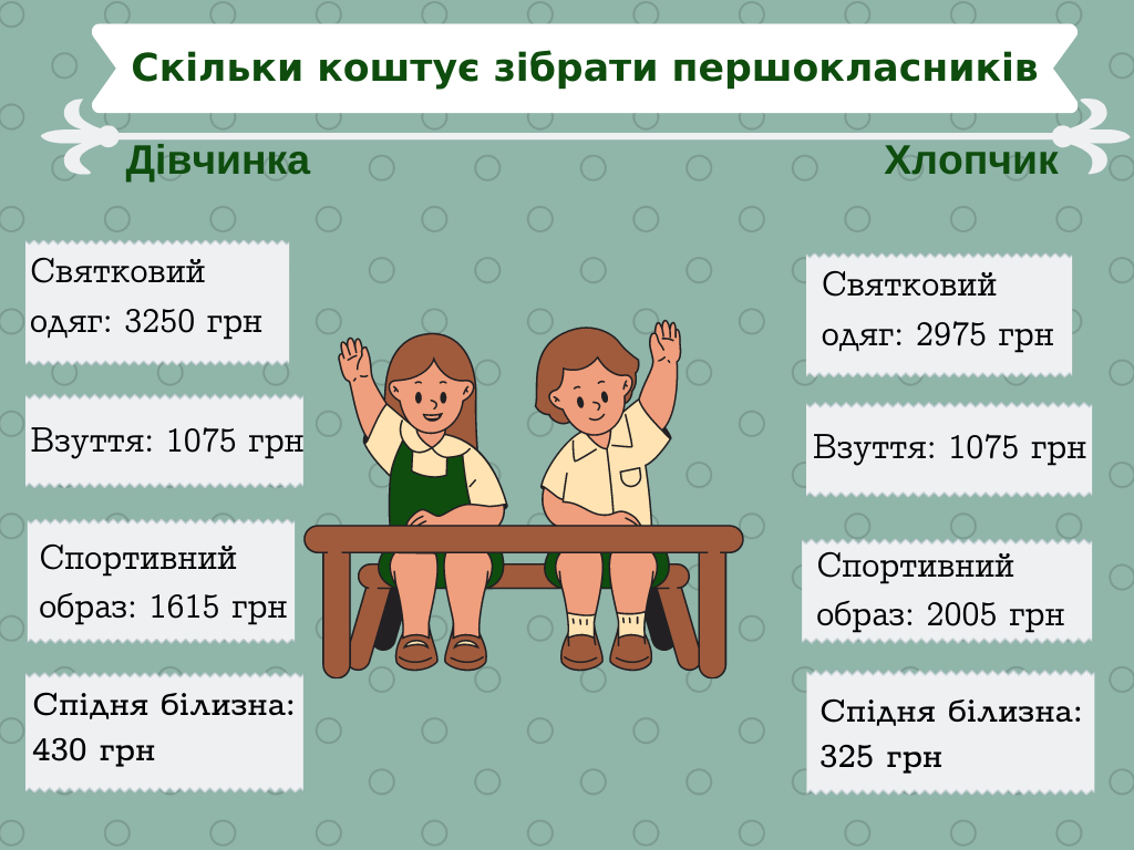 Отож, за нашими підрахунками, зібрати першокласника до школи обійдеться у 6 380 гривень.