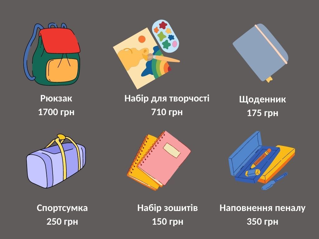 На графіку наведена середня вартість речей на тернопільському ринку. І загалом виходить 3 335 гривень лише на канцелярію на перший час.