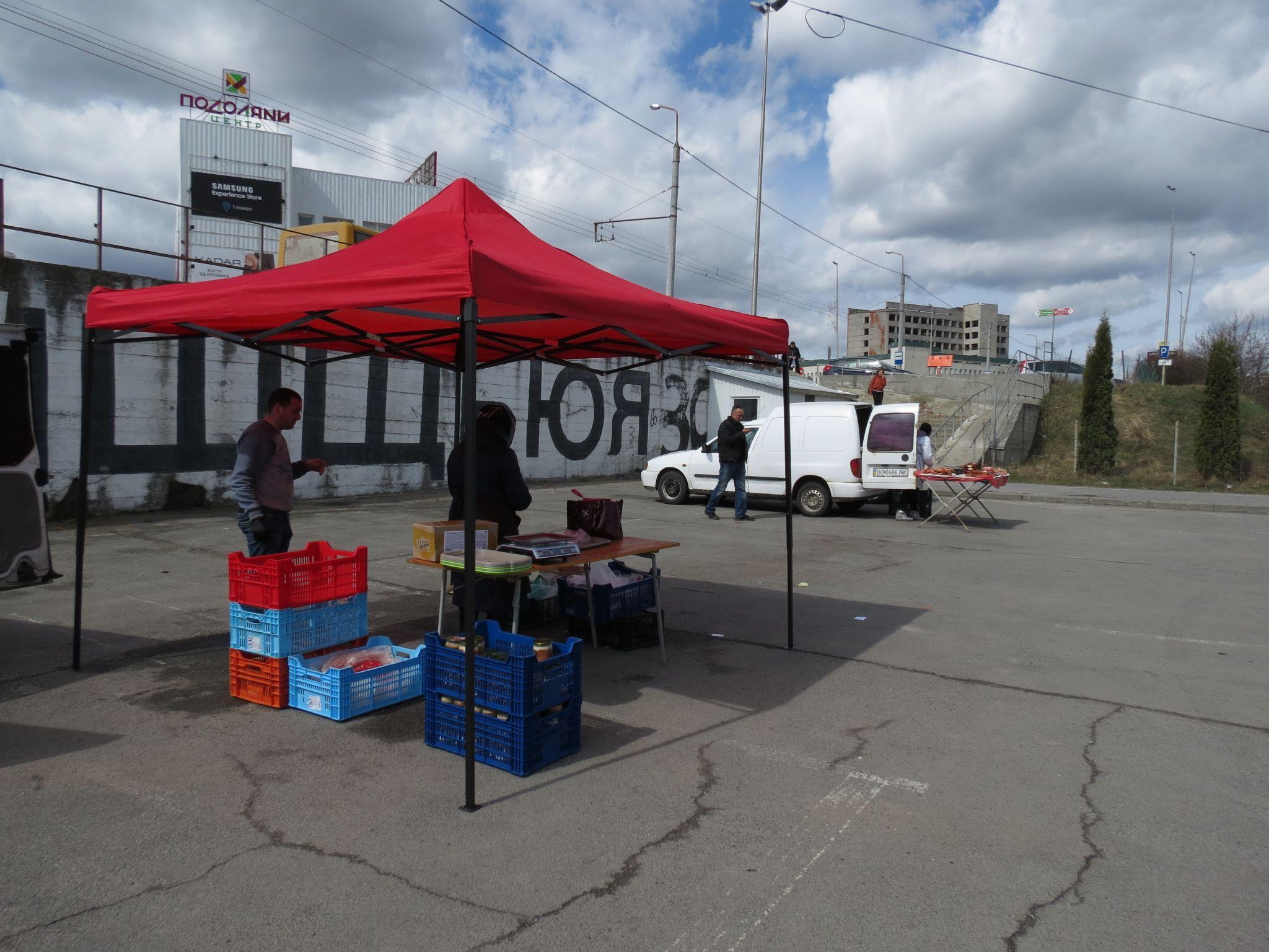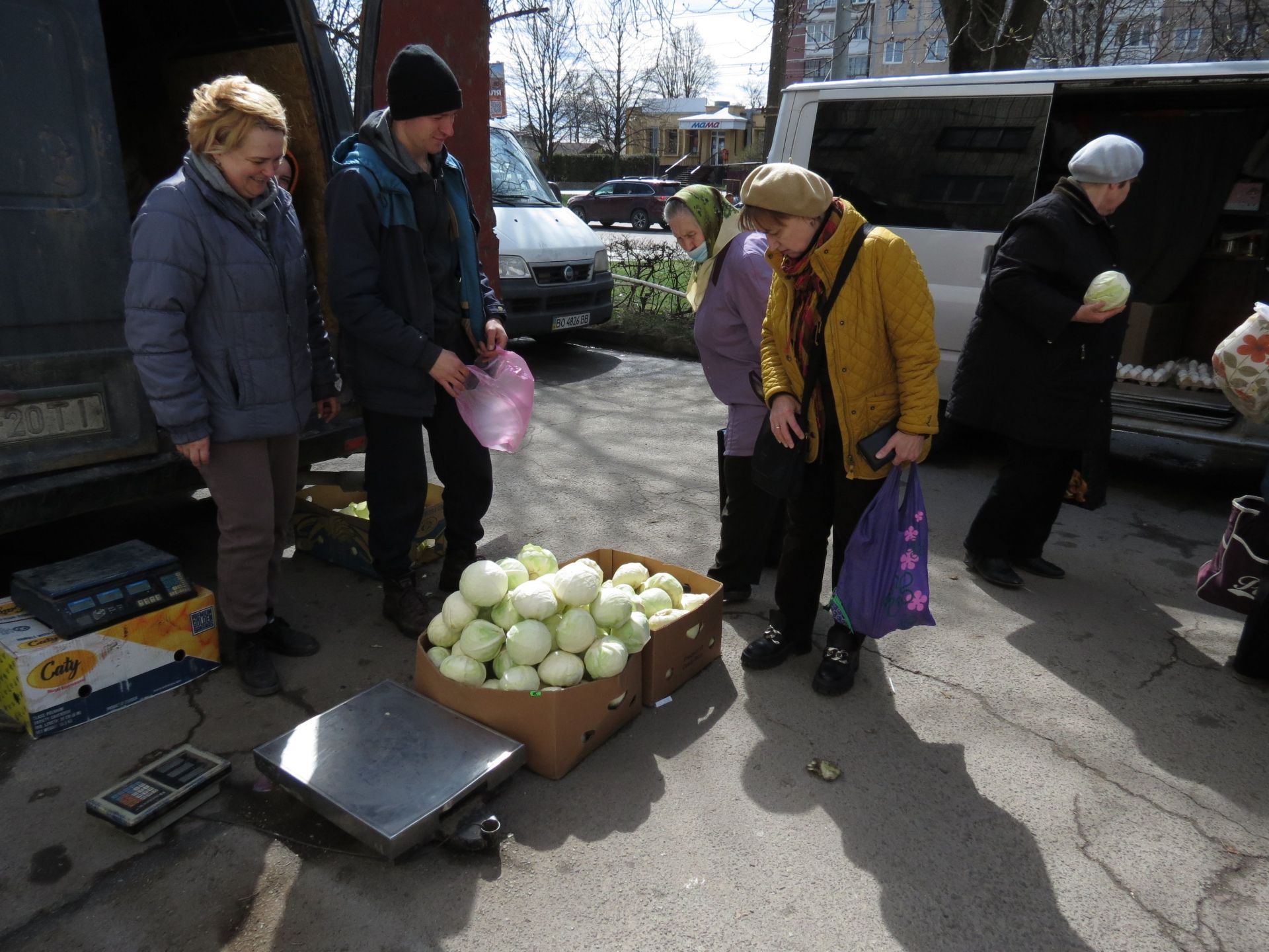 Як розповіли продавці – вже з самого ранку багато людей приходять за покупками. Найбільші черги о 9–10 годині, хоча біля деяких наметів та автівок є черги і в обідню пору.