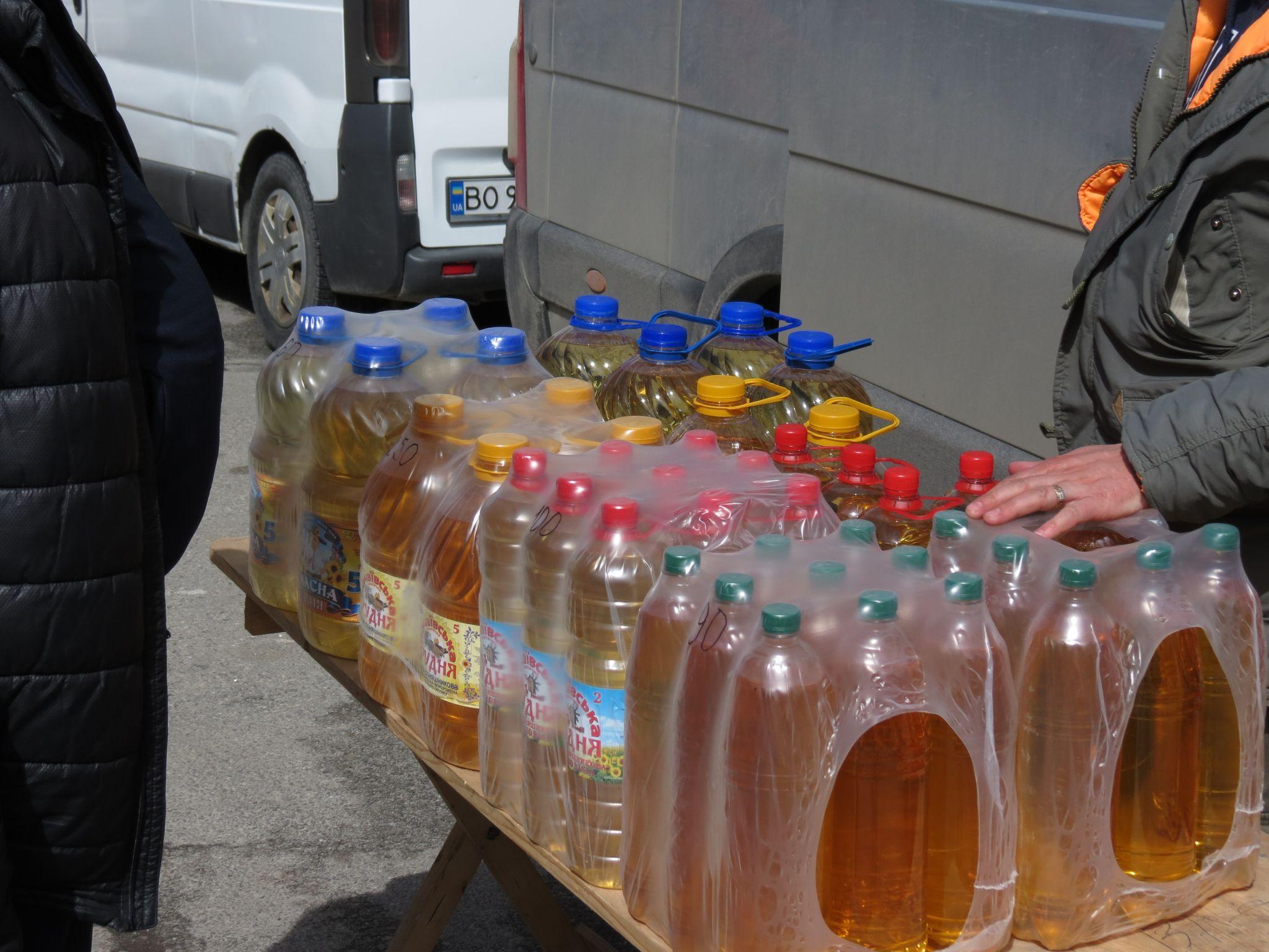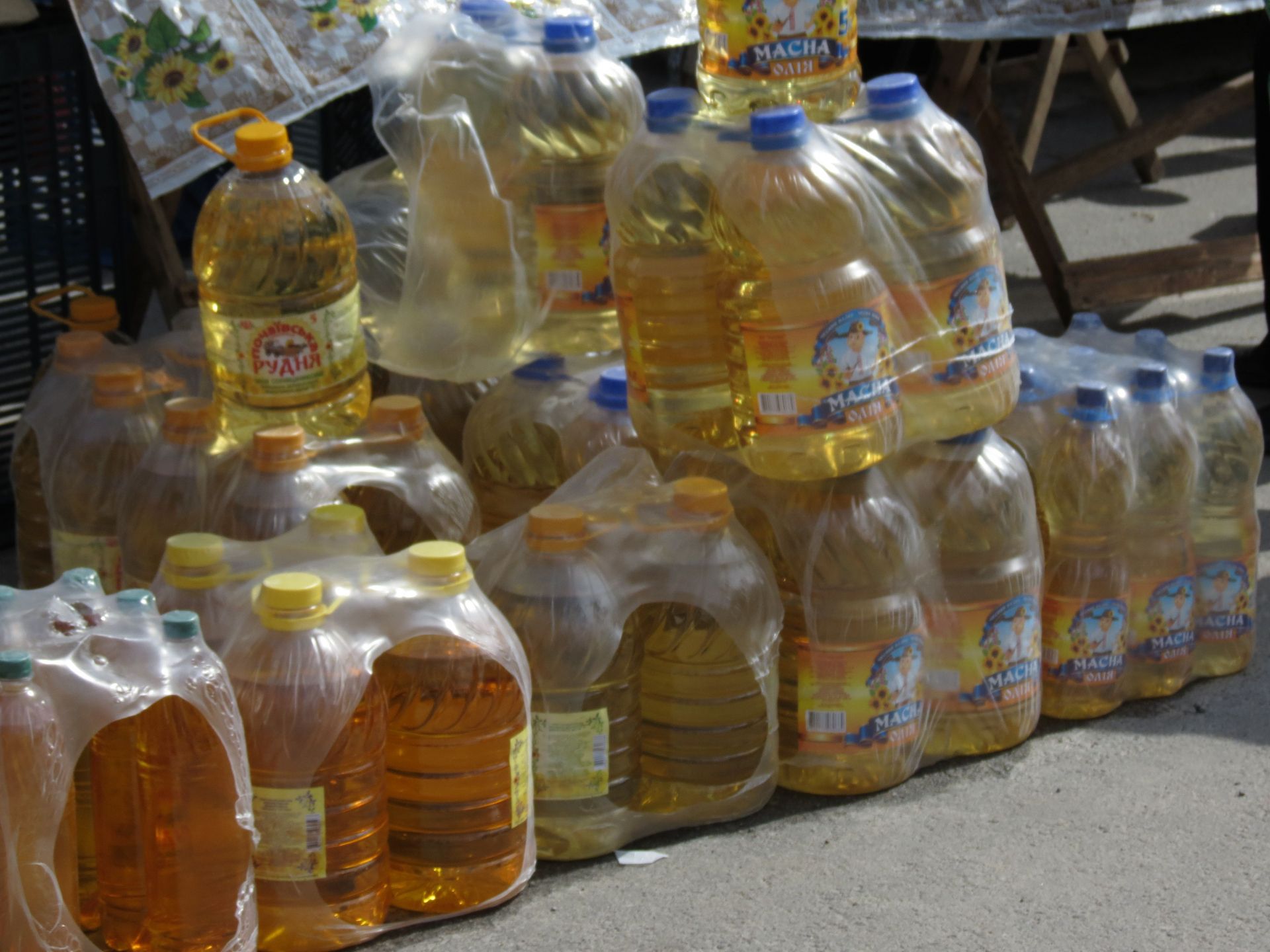 Соняшникова рафінована олія – 100 грн за 2 л. Домашня – 90 грн за 2 л.