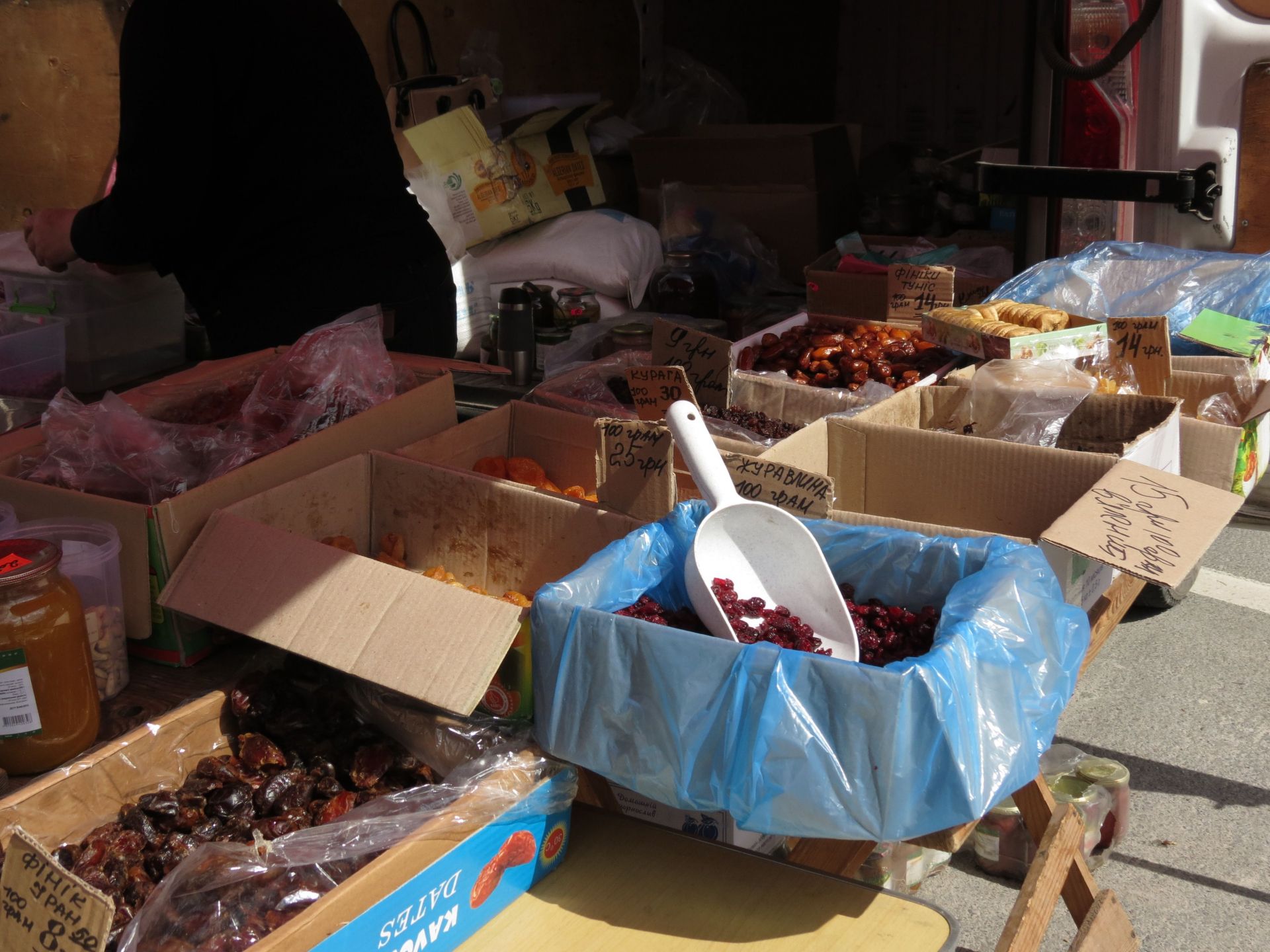 Продають там овочі, фрукти, м’ясо, ковбаси, яйця, олію, крупи, борошно, мед, випічку та багато іншого.