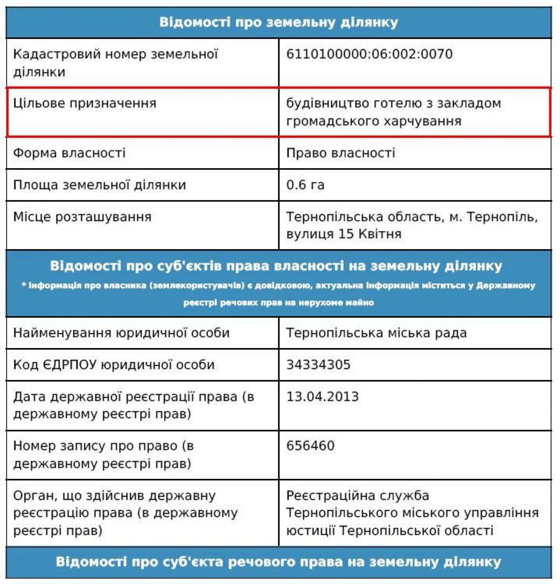 Проте, як ми вже раніше писали, 0,6 га паркової землі міськрада ще у 2013 році вивела з парку Нацвідродження та передала в розпорядження комунальному підприємству «Тернопільбудінвестзамовник» для будівництва еко-готелю.