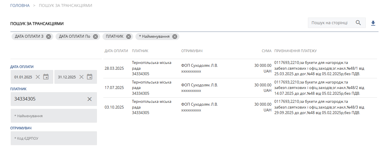 За даними Spending, міська рада сплатила за букети ФОП Суходоляк Любов Володимирівна три платежі по 30 тисяч гривень.