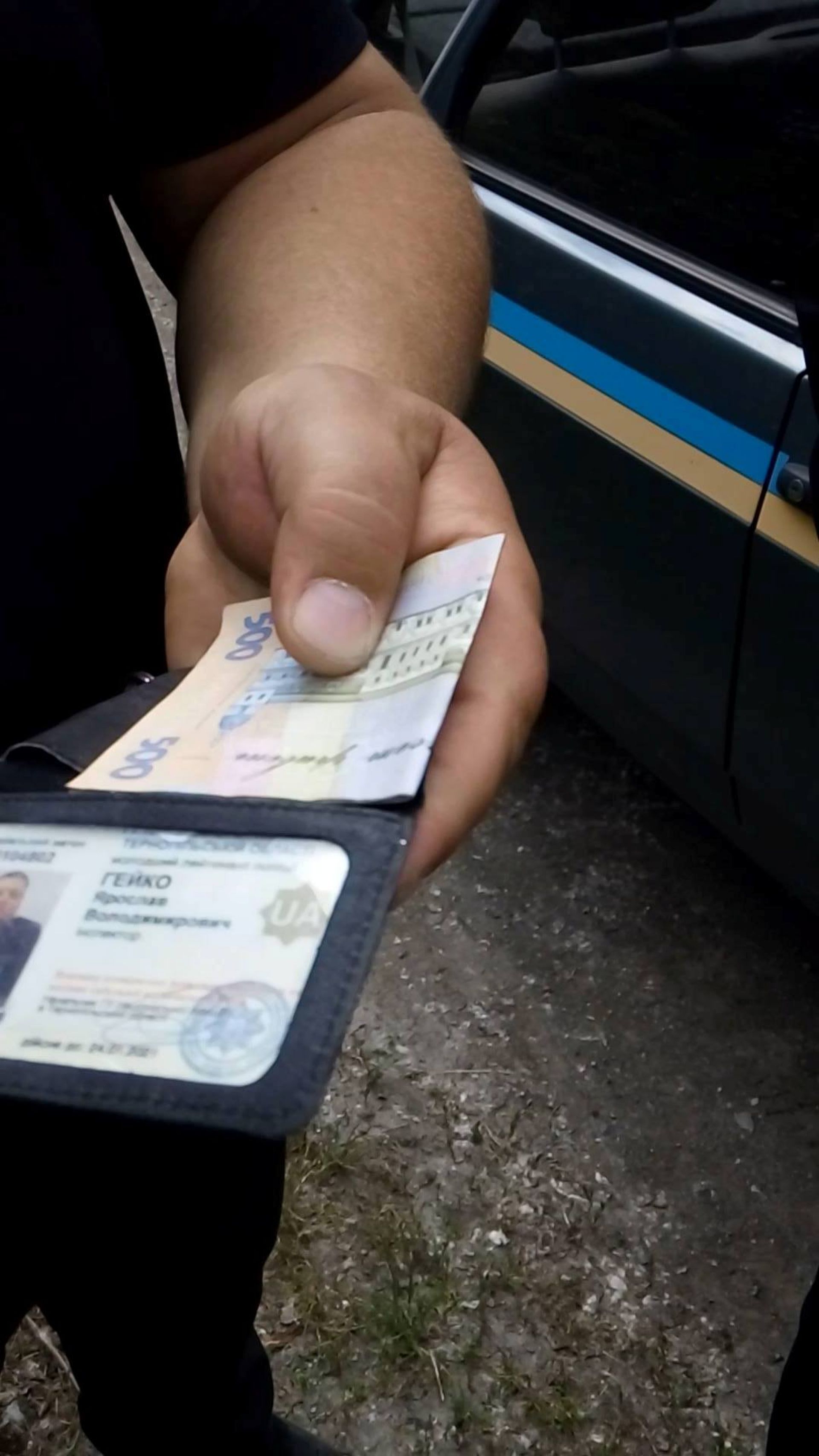 - Той що товстіший, дістає посвідчення і в нього там дві купюри по 500 грн, - продовжує він. - Я одразу ж припустив, що це могли б бути хабарі, і це їм сказав. Поліцейський знову розгубився і став виправдовуватися нібито йому ці гроші дала дружина на обід. Коли я попросив посвідчення іншого поліцейського, він мені відповів, що у них термінове завдання і вони не мають часу тут зі мною щось з'ясовувати.