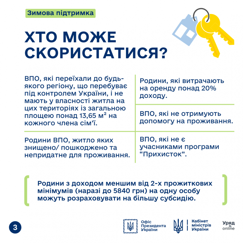 Це частина Зимової підтримки, спрямованої на допомогу українським родинам у складні зимові місяці. Це комплексний пакет нових і вже наявних програм, які роблять допомогу доступнішою для всіх, хто її потребує, — йдеться у повідомленні.