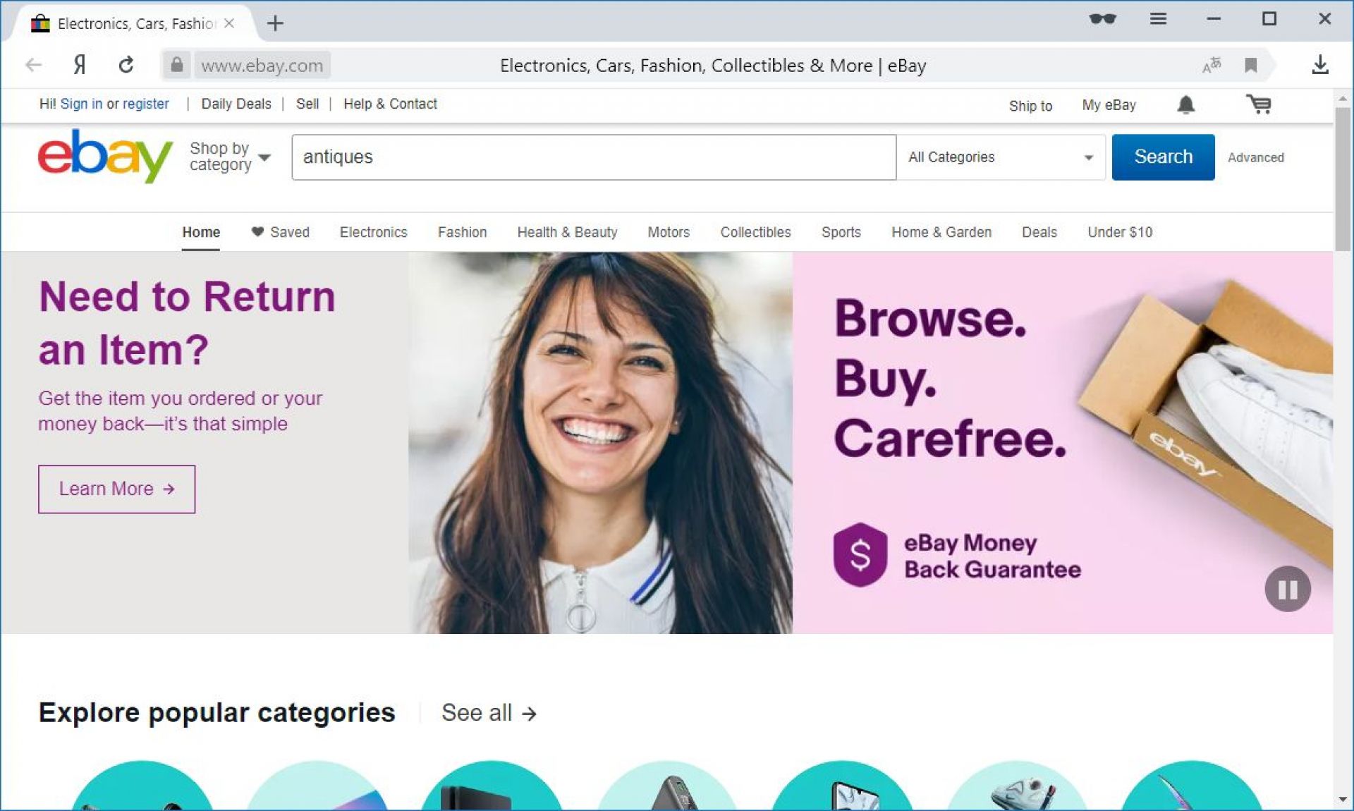 Розглядатимемо найбільшу платформу для продажу товару з усього світу – Ebay.com. Там люди з усього світу подають свої оголошення. Також цей майданчик пропонує проведення аукціонів. Однак для багатьох людей незрозуміло, як саме замовляти речі, оскільки сайт англомовний і обрати українську чи російську мову неможна.