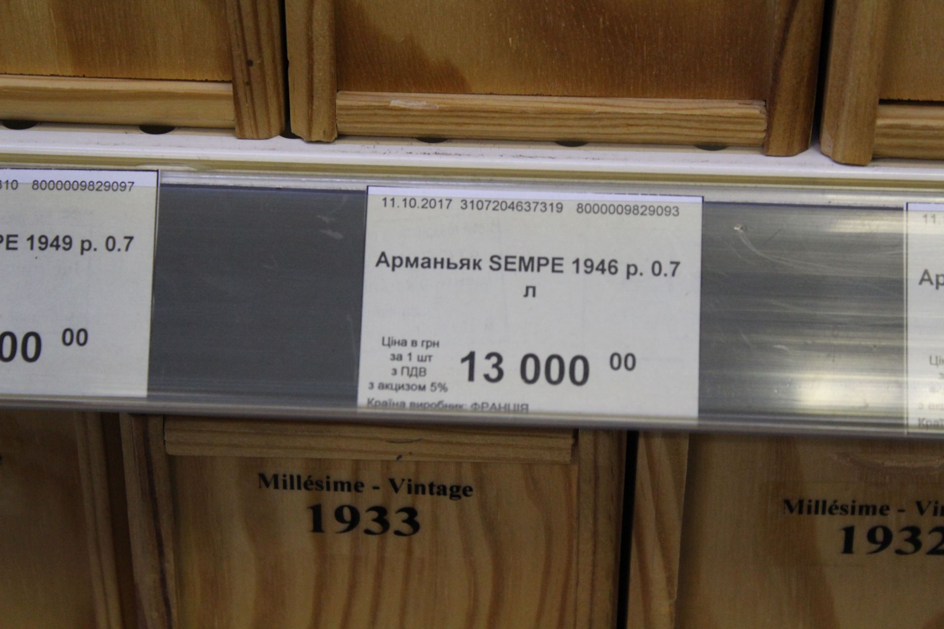 - Наразі у нас найдорожчий 26-річний віскі Prometheus, вартістю 21 000 грн за пляшку, - каже фахівець. - Немає змісту виставляти на вітрину дорожчі напої. Як правило, коли людина приходить за дорогими напоями, вона не купляє одразу. Спочатку повинна визначити, що саме хоче, який вид напою, врожай якого року, яка упаковка тощо. Переважно у нас елітні напої клієнти замовляють заздалегідь. Ціни можуть сягати і мільйона гривень за пляшку. Все залежить від гаманця клієнта. Найдорожчий напій, який ми продали, був коньяк Jean Fillioux за 36 000 грн.