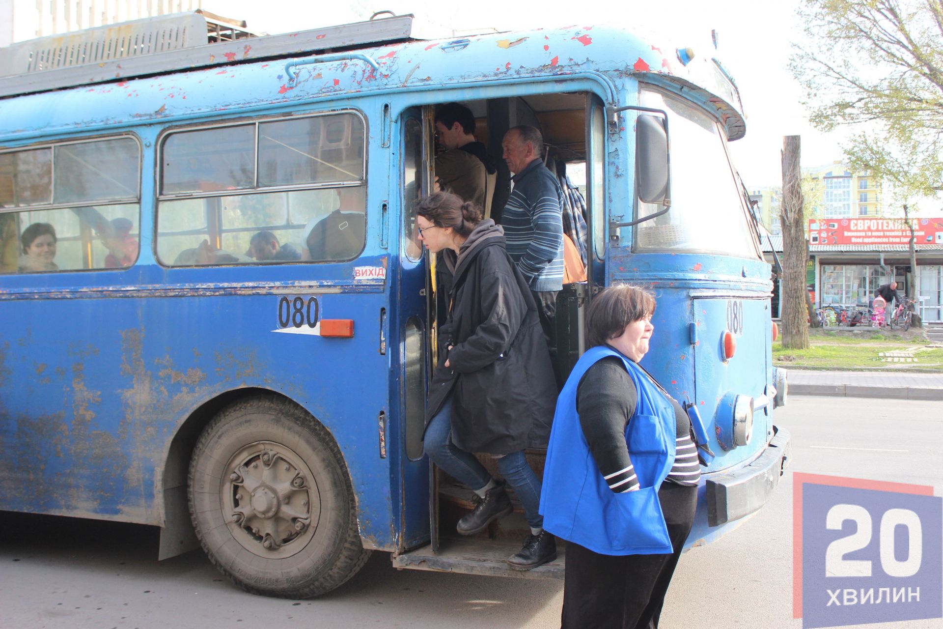 Тому старенький синій тролейбус перетворили на знімальний майданчик. І курсував він через Центральний ринок, попри став та через "Дружбу". У ньому головна героїня їхала з роботи додому. Для масовки запросили бажаючих студентів, дітей з батьками, іноземців, пенсіонерів, та інших героїв. Хоча вони і не професійні актори, але теж грали певні ролі.