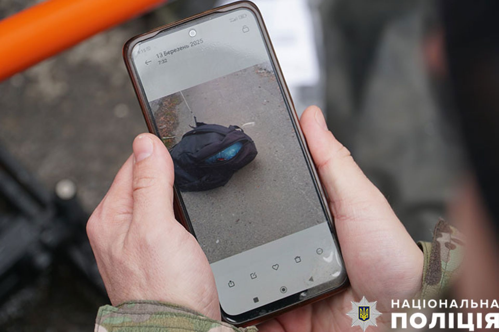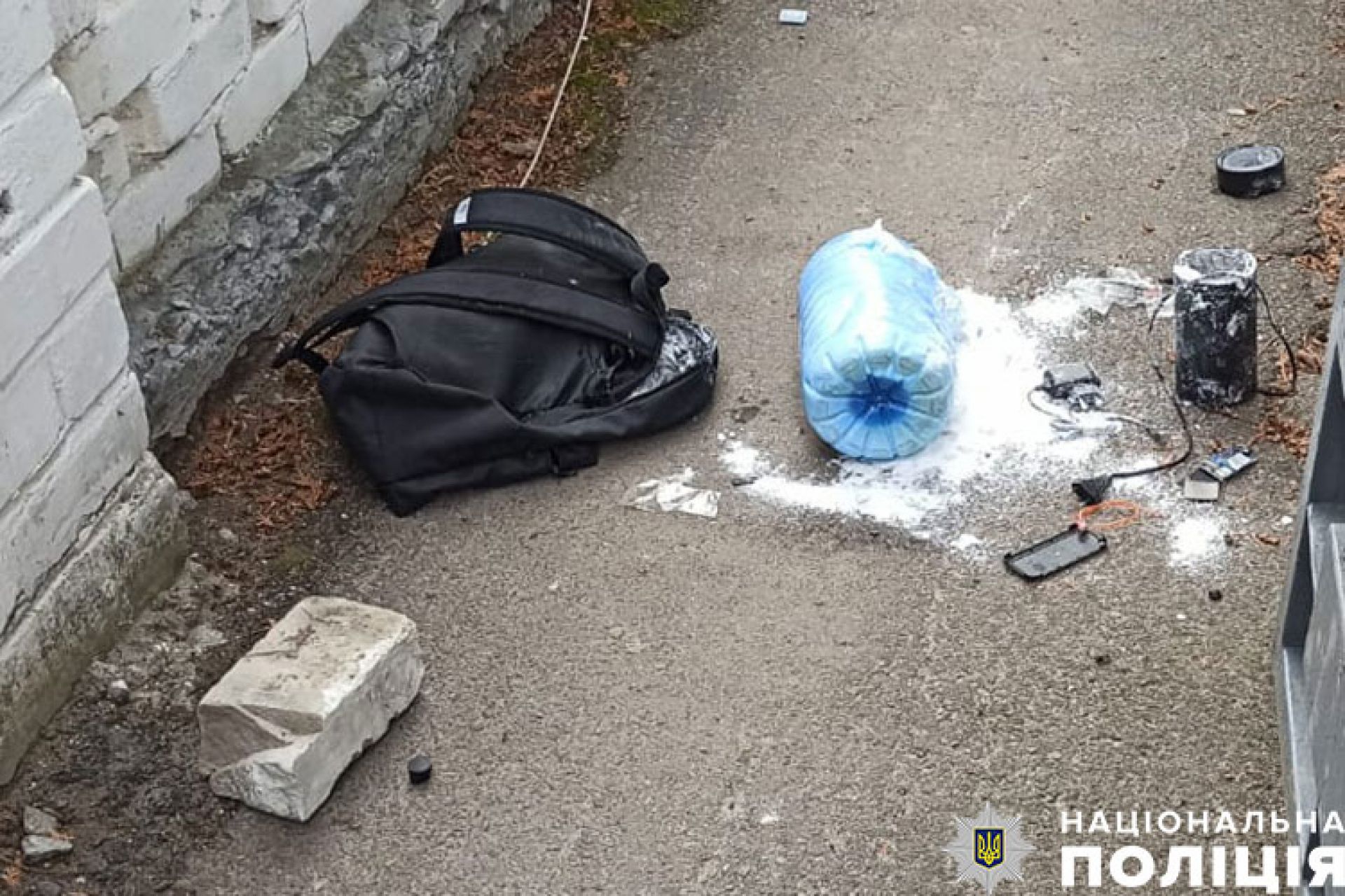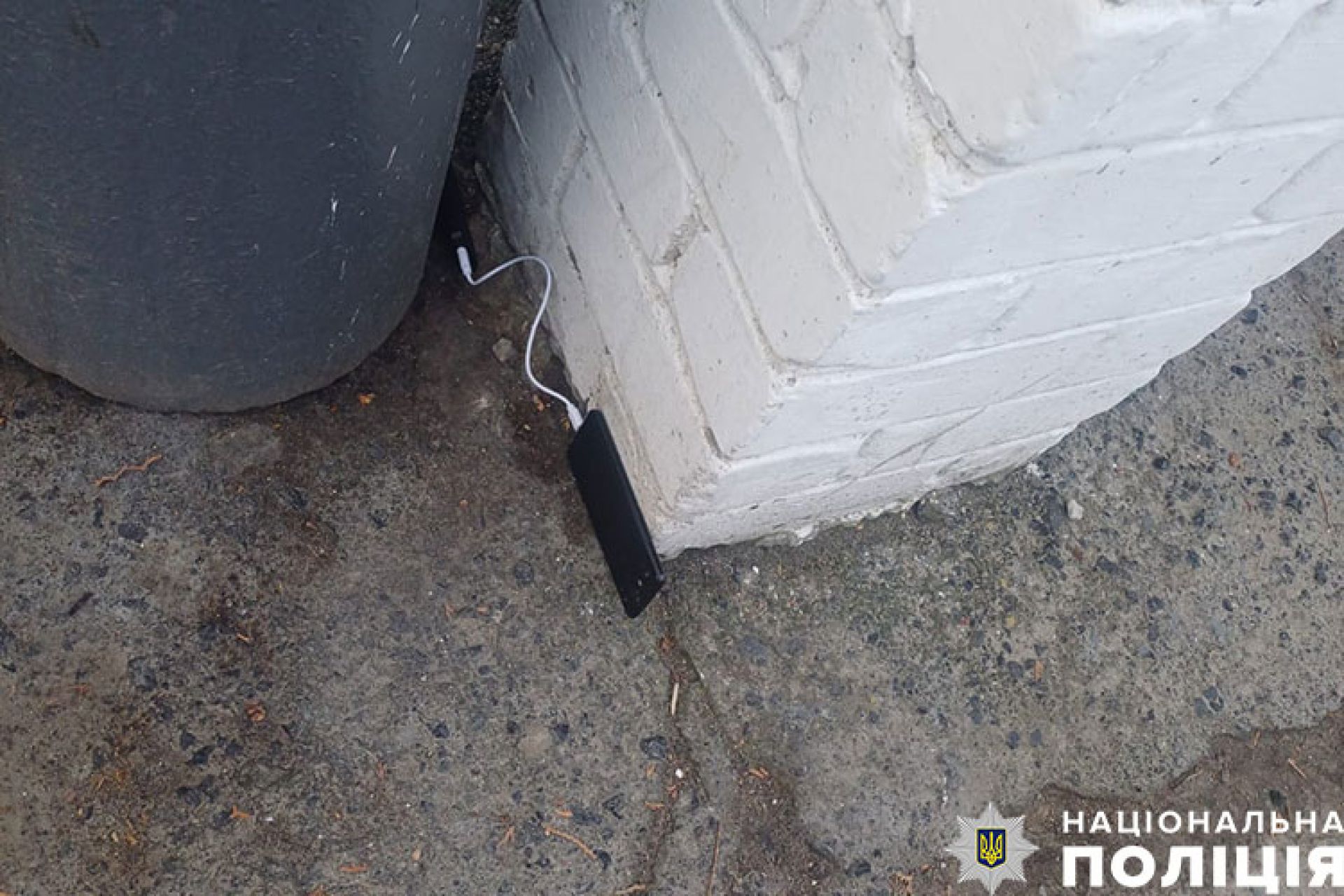 Близько 06:50 під час обстеження території адмінбудівлі поліції співробітник територіального підрозділу виявив під службовим автомобілем чорний наплічник, а неподалік — мобільний телефон з павербанком. Про підозрілу знахідку повідомив усі екстрені служби.