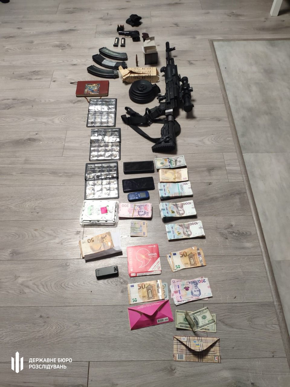 Під час обшуків в помешканні податківця вилучили гроші, старовинні монети, зброю а також бойові припаси, які він зберігав без передбачених законом дозволів.