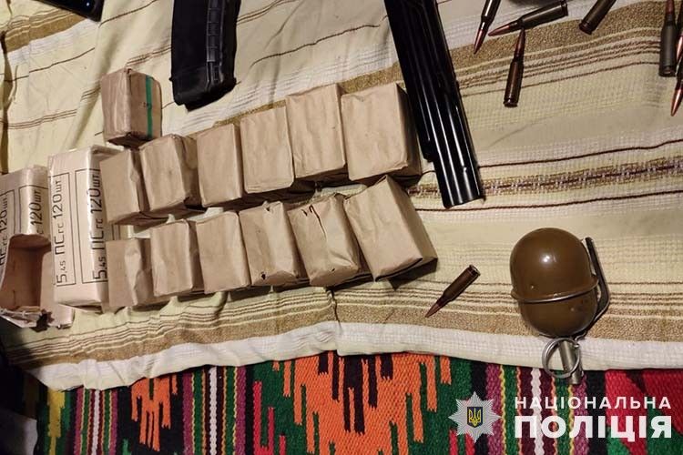 Працівники поліції виявили гранату РГД-5, автомат Калашникова, 628 патронів до нього та чотири магазини, а також кришку ствольної коробки.