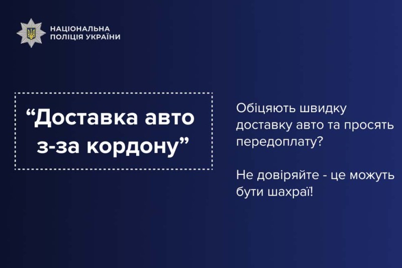 Правоохоронці вкотре застерігають: перш ніж надсилати гроші невідомим особам – ретельно перевіряйте інформацію. Не довіряйте обіцянкам швидкої доставки чи занадто вигідної ціни. Купівля авто через неперевірені онлайн-ресурси – надто ризикований крок. Якщо продавець наполягає на передоплаті та просить додаткові суми за нібито «оформлення» — це може бути шахрайська схема.