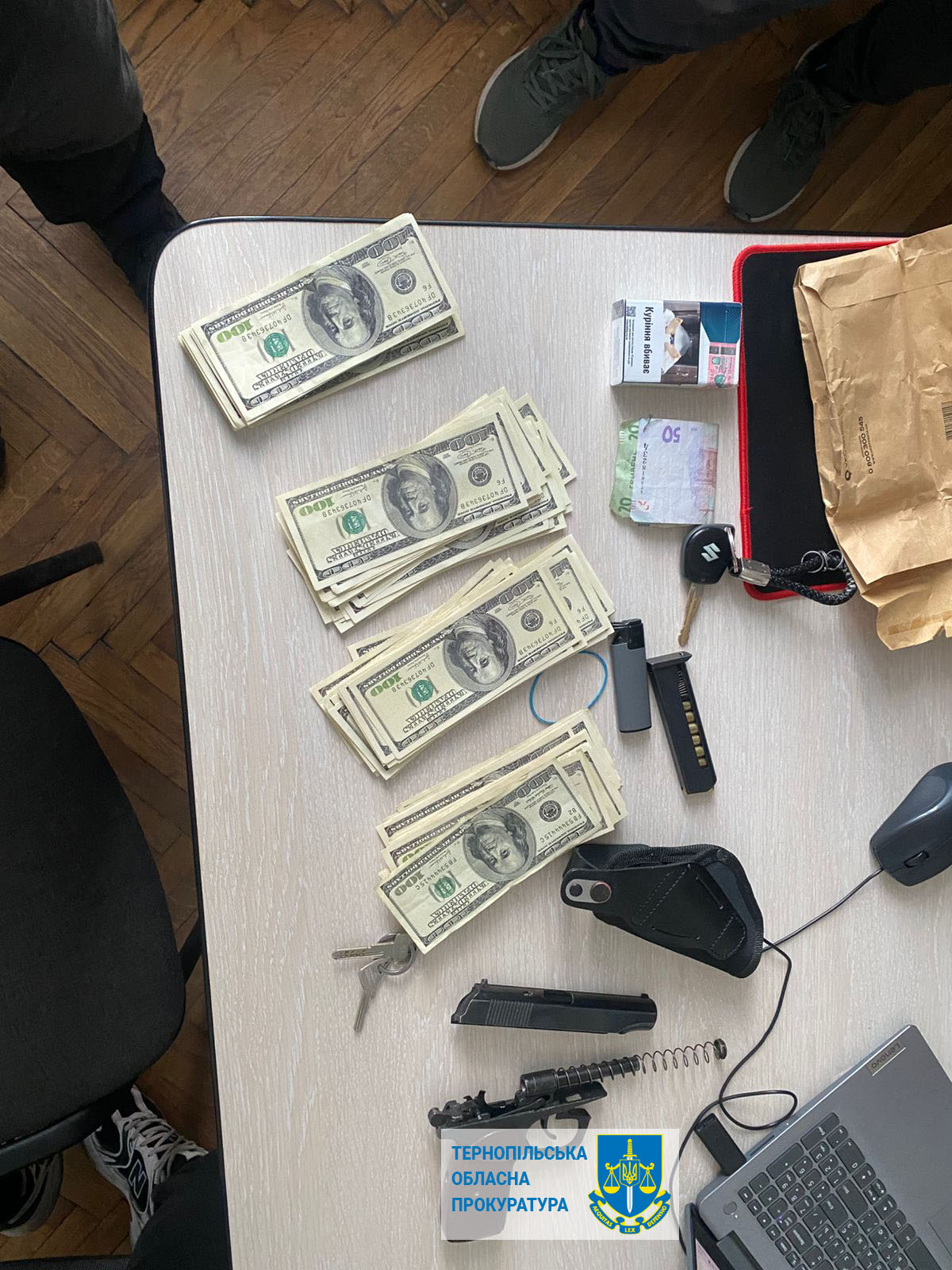 Під час зустрічі з черговим «клієнтом» та отримання неправомірної вигоди в сумі 14 000 доларів США, правоохоронці затримали підозрюваного відповідно до статті 208 Кримінального процесуального кодексу України. Кошти вилучили.