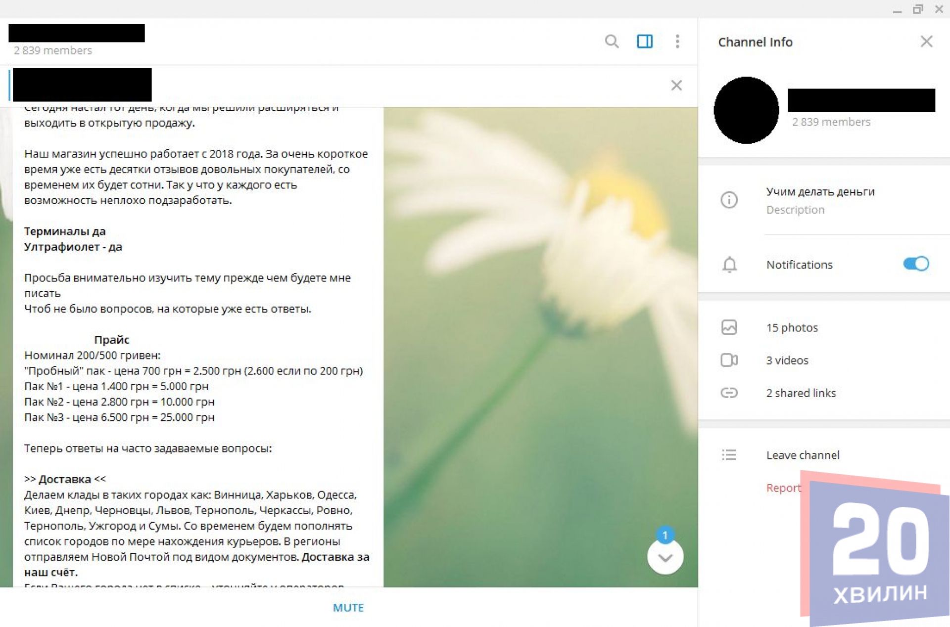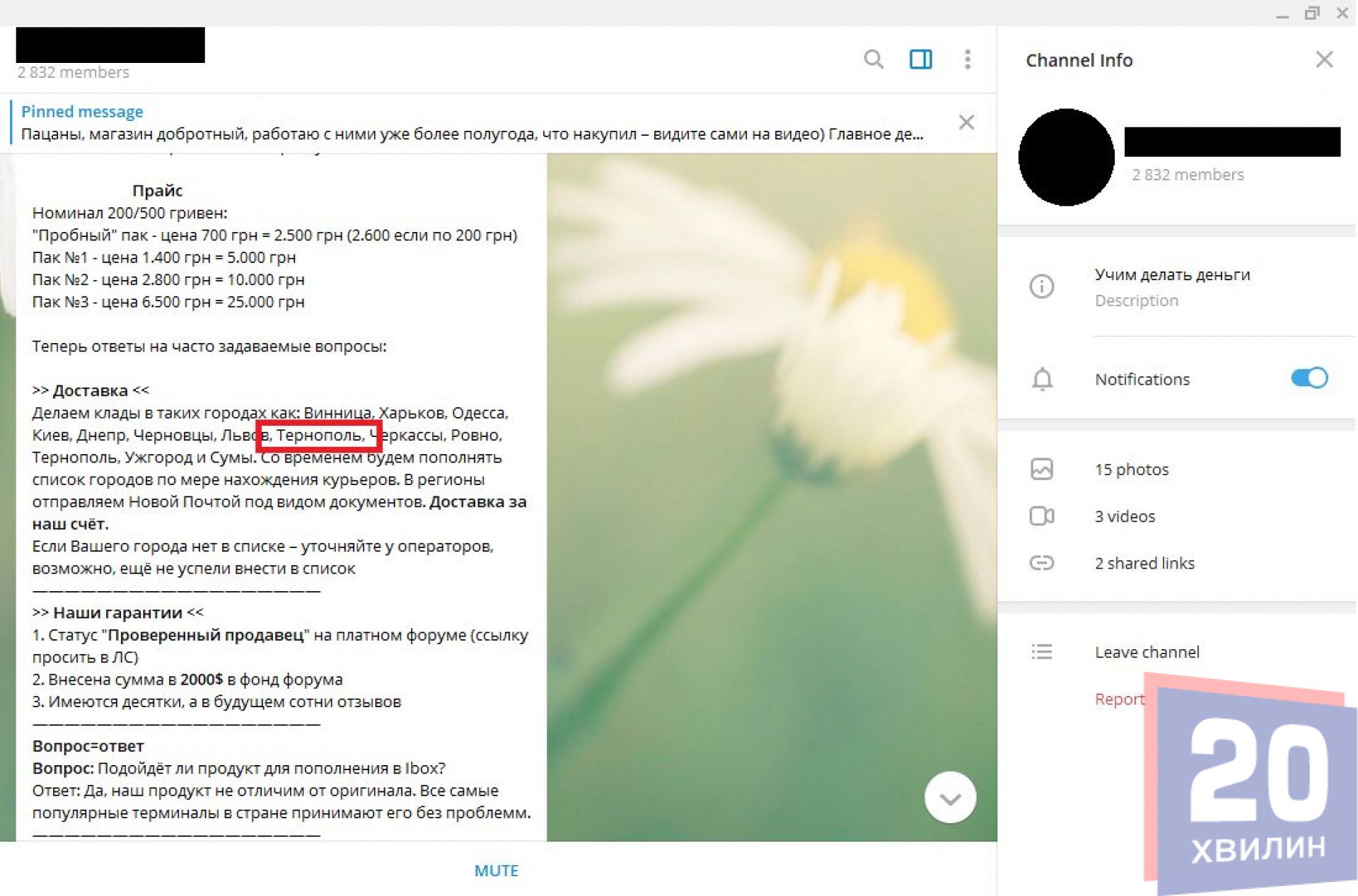 У соціальній мережі Facebook журналіст «20 хвилин» помітив рекламу, де тернополянам пропонували придбати фальшиві гроші. Переходячи за посиланням, відкривається магазин у Телеграмі. Цей канал став найбільш популярний серед різних шахраїв та кіберзлочинців. Рекламу у Facebook швидко прибрали модератори, однак чому така реклама взагалі потрапила в соціальну мережу, невідомо.