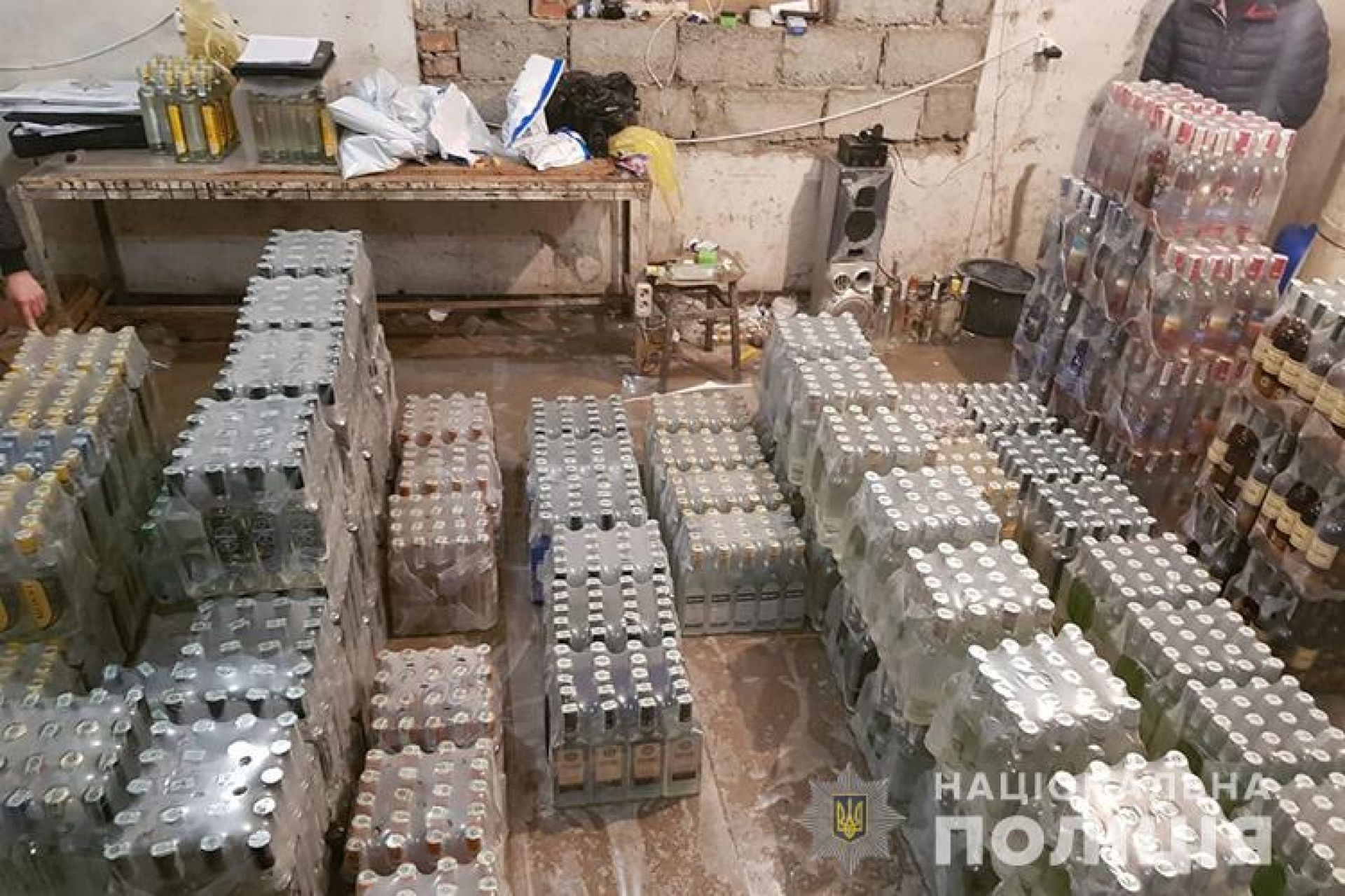 - Жителі Тернопільської області в підсобному приміщенні організували виготовлення контрафактної горілки шляхом змішування води та спирту - це горілка, а коньяк - змішували спирт з водою та додавали барвники.