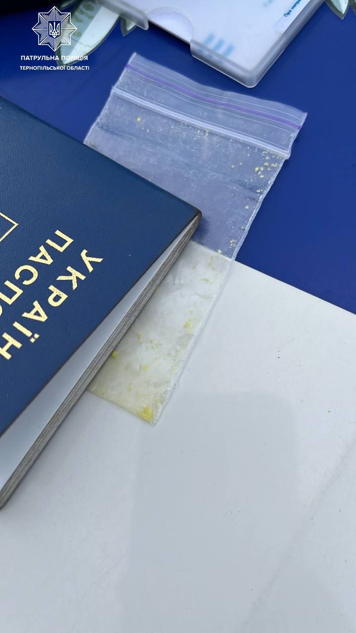 Відповідно до закону, патрульні провели поверхневу перевірку та виявили у водія паперовий згорток з невідомою порошкоподібною речовиною білого кольору, а у пасажирки — поліетиленовий пакет із невідомою порошкоподібною речовиною зеленого кольору.