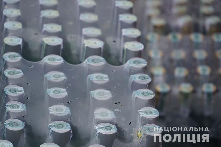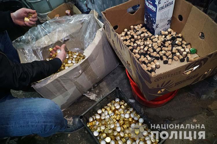 Під час обшуків поліцейські вилучили обладнання, барвники, понад 2000 корків, акцизні марки, фірмові етикетки, порожні пляшки та 11 блоків сигарет, 1350 літрів готової продукції, розфасованої уже у більш як сто ящиків.