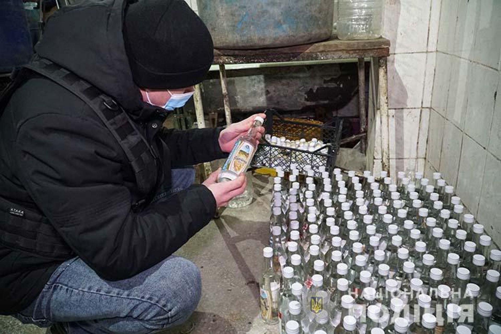 Майже тисячу літрів спирту, майже дві тисячі пляшок з готовою лікеро-горілчаною продукцією, марки акцизного збору, етикетки, корки та інше знаряддя для виготовлення підроблених спиртних виробів на понад 250 тисяч гривень виявили та вилучили у Тернополі правоохоронці, повідомляє відділ комунікації поліції Тернопільської області.