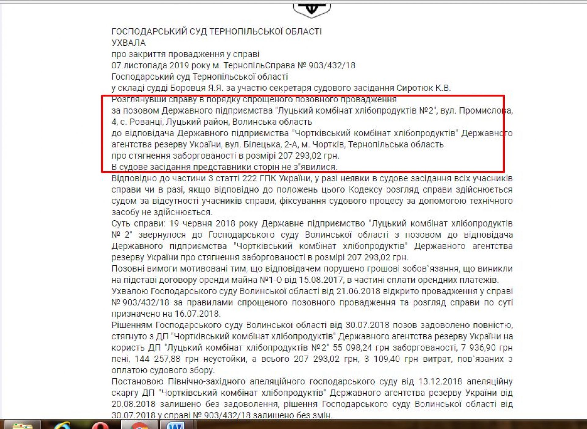 У лютому цього року поліція Тернопільщини виявила факт зловживання службовим становищем та привласнення грошових коштів службовими особами Державного підприємства «Чортківський комбінат хлібопродуктів» Державного агентства резерву України.