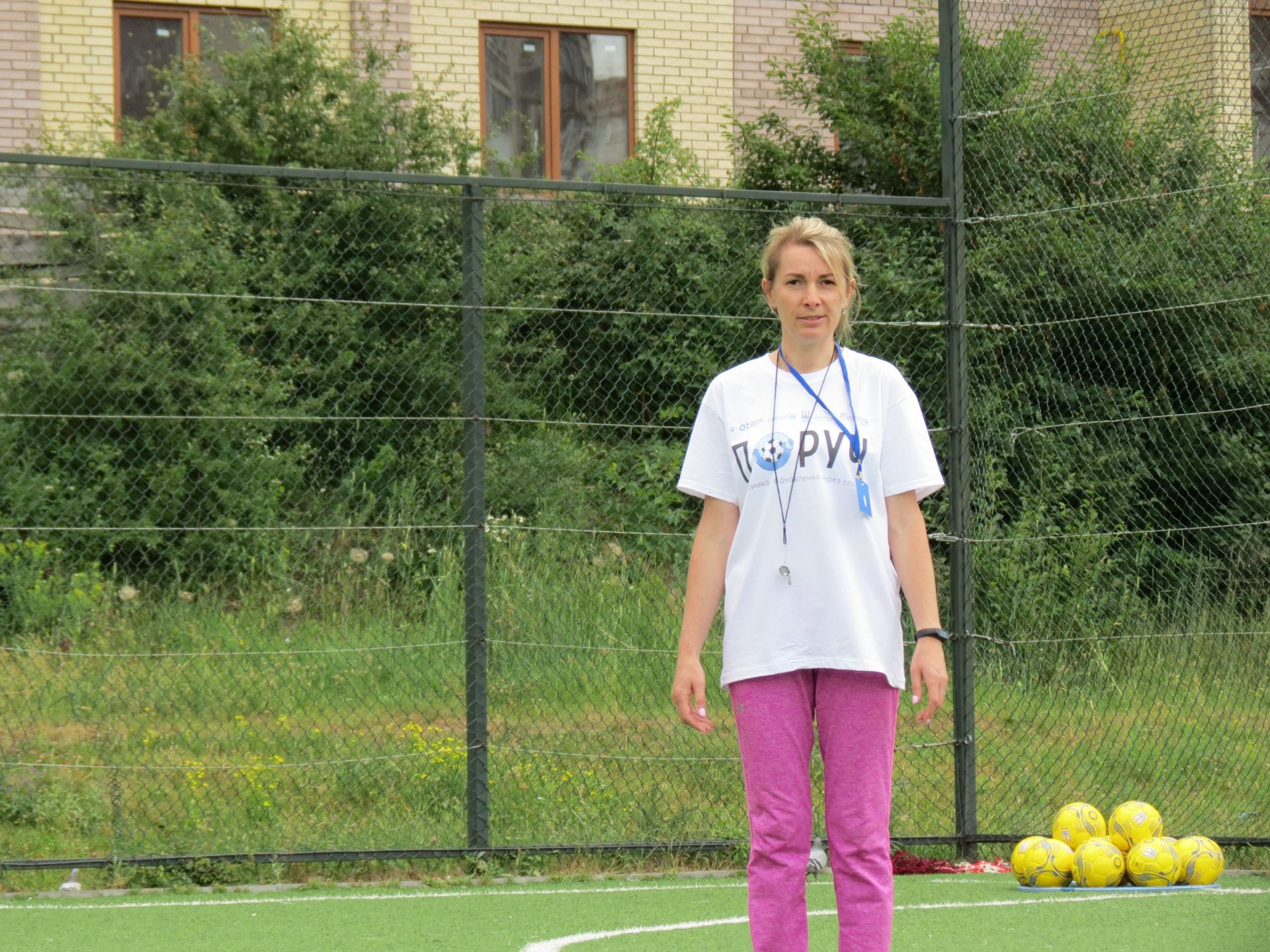 За словами пана Володимира Ясюченя, спортивна складова «Поруч» включає в себе різні ігри відповідно до вікової категорії дітей. Вправи нескладні, мають футбольне спрямування і їх легко може виконати будь-хто.