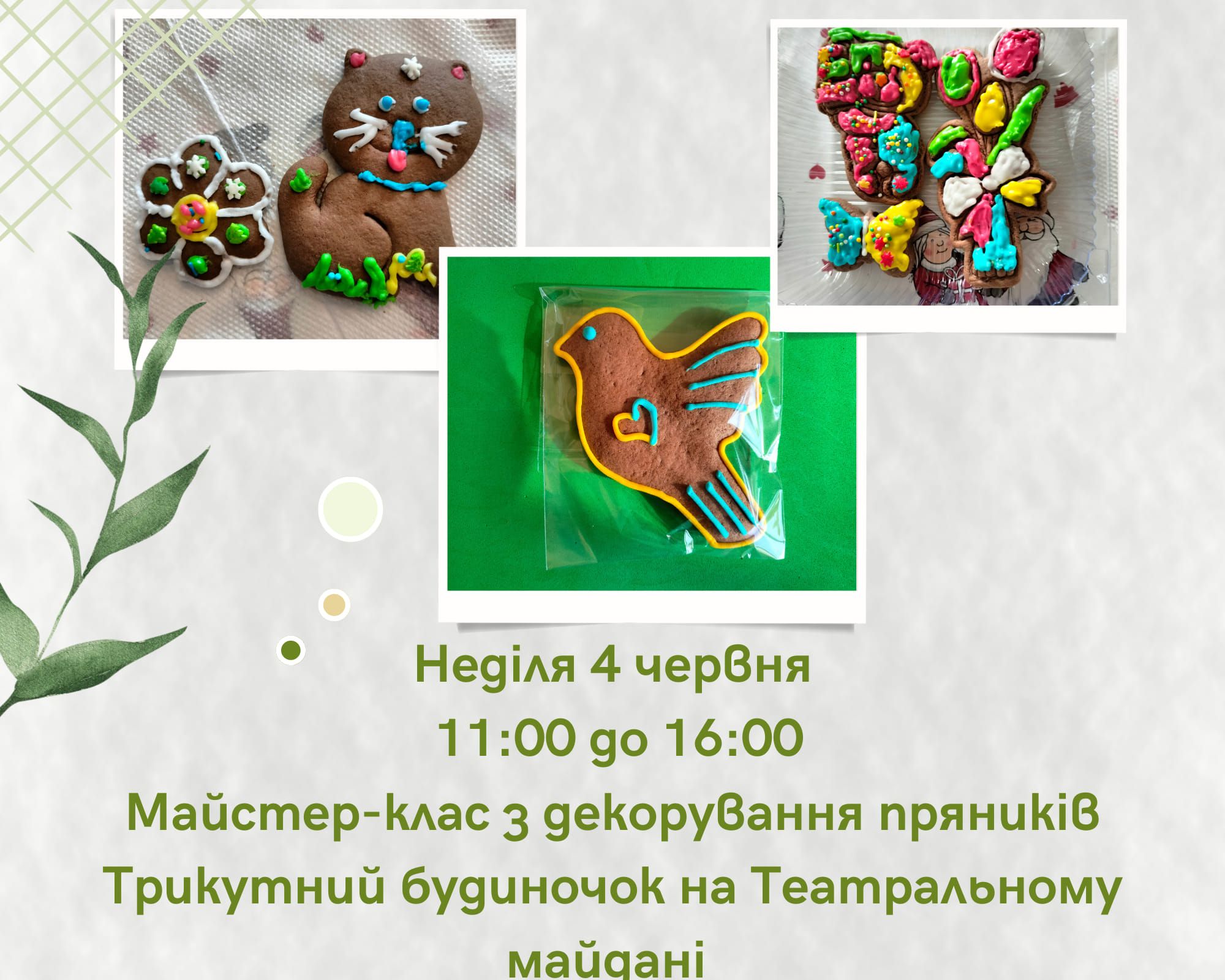Ви зможете навчитись розписувати смачні та ароматні пряники. Під час майстер-класу кожен учасник обере прянички і за допомогою глазурі та посипки створить солодкий витвір мистецтва. У разі тривоги будиночок працювати не буде. Додаткова інформація за номером телефону: 098 052 07 20.
