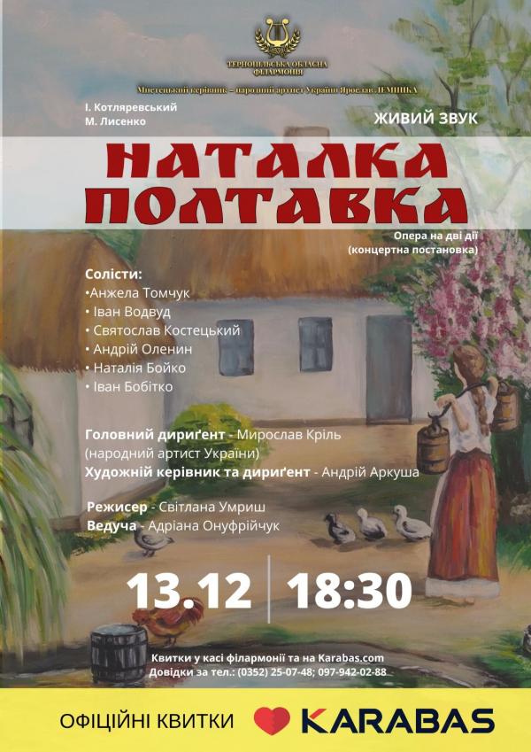 Опера «НАТАЛКА ПОЛТАВКА» у концертному виконанні за участю Академічного симфонічного оркестру та солістів Тернопільської обласної філармонії.