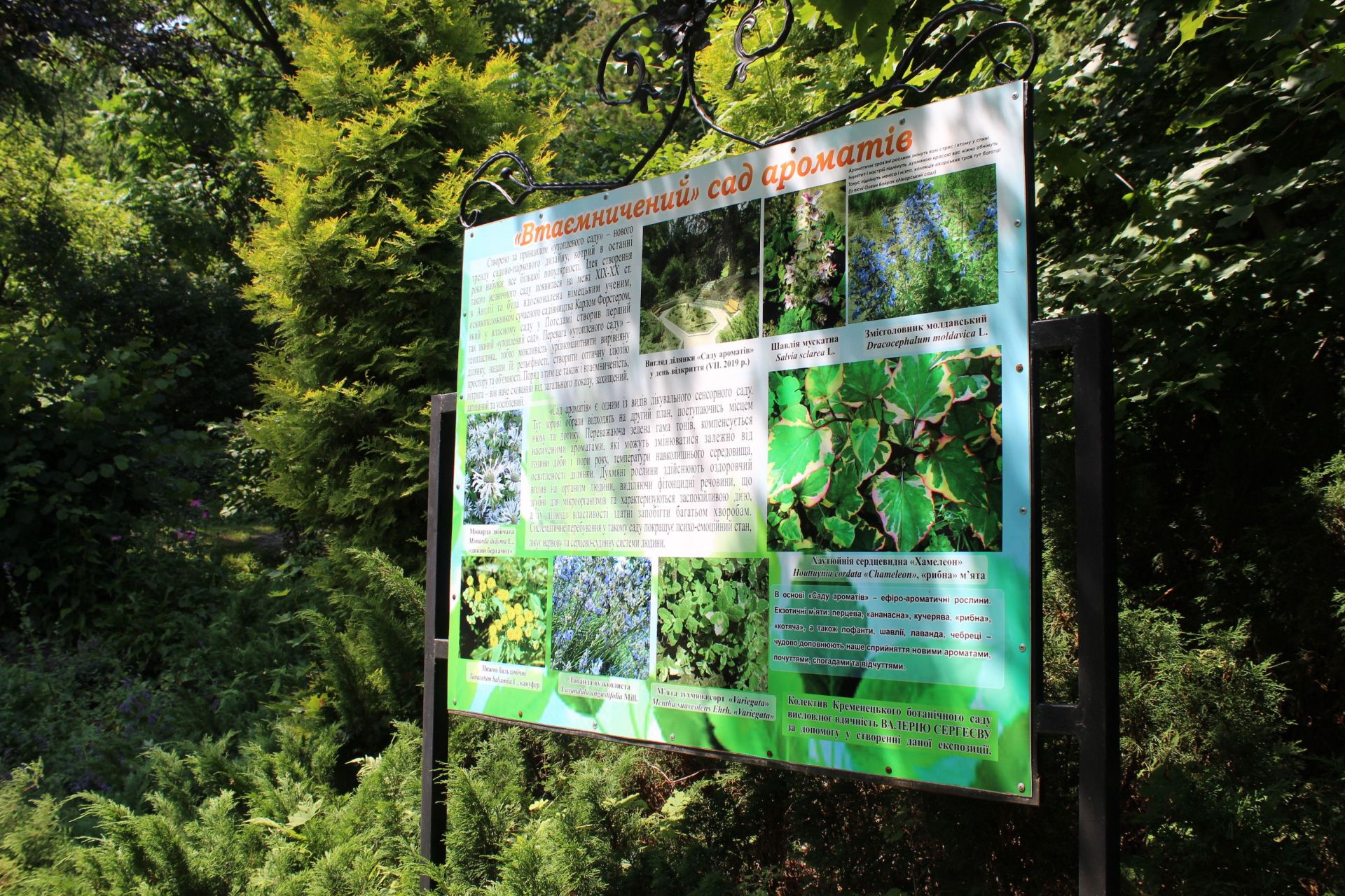 Вас точно здивує експозиція «Втаємниченого» саду ароматів, в основі якого – ефіро-ароматичні рослини. Рано вранці або ввечері можна відчути унікальний запах кожної квітки. Перебування тут позитивно впливає на організм людини, заспокоює та покращує психо-емоційний стан.