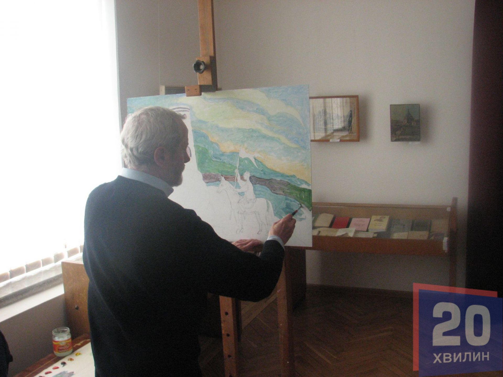 На другому поверсі невеличкий оркестр супроводжував поетичні виступи. Марія Балицька читала поезії із книги "Журавлина пісня", яка присвячена її брату, котрий воював на Донбасі. Прямо на очах у відвідувачів професійні художники Андрій Чернець та Степан Мамчур створювали картину на козацьку тематику.