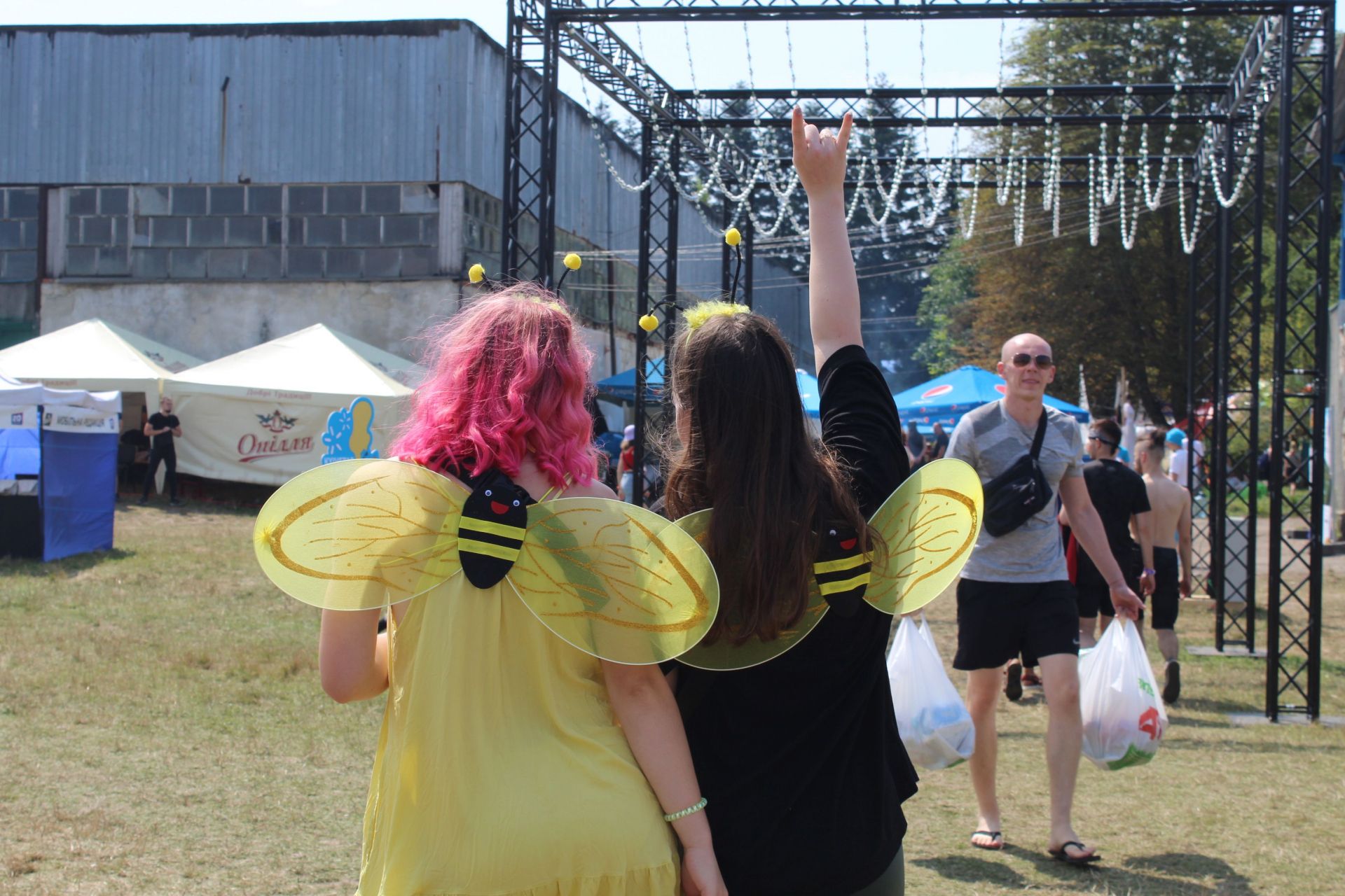 Незважаючи на спеку, багато людей одягають чорні речі – футболки з прінтами улюблених рок-гуртів.