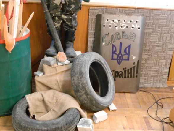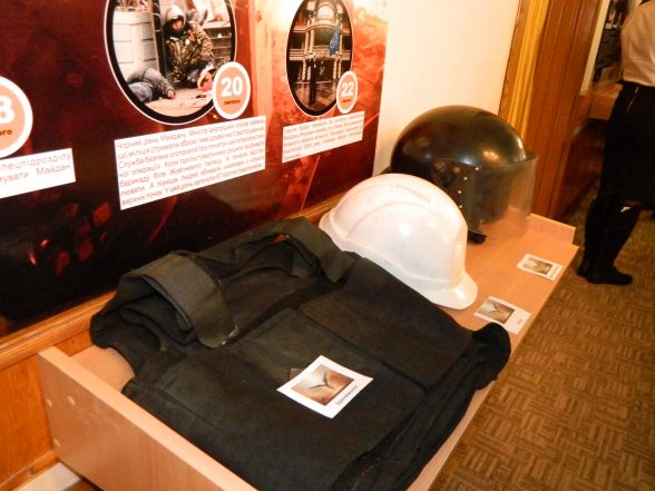 - Тут можна побачити абсолютно все, що стосувалося Майдану – гільзи, щити, бронежилети, каски, навіть беркутівські каски, які зняли наші майданівці. А також протигази, респіратори, предмети побуту, - каже Руслан Заброцький. – В музеї є картини на тему Майдану тернопільського художника Михайла Кафтана, фотографії місцевих фотографів – Миколи Василечка, Івана Пшоняка, Ігоря Крочака.