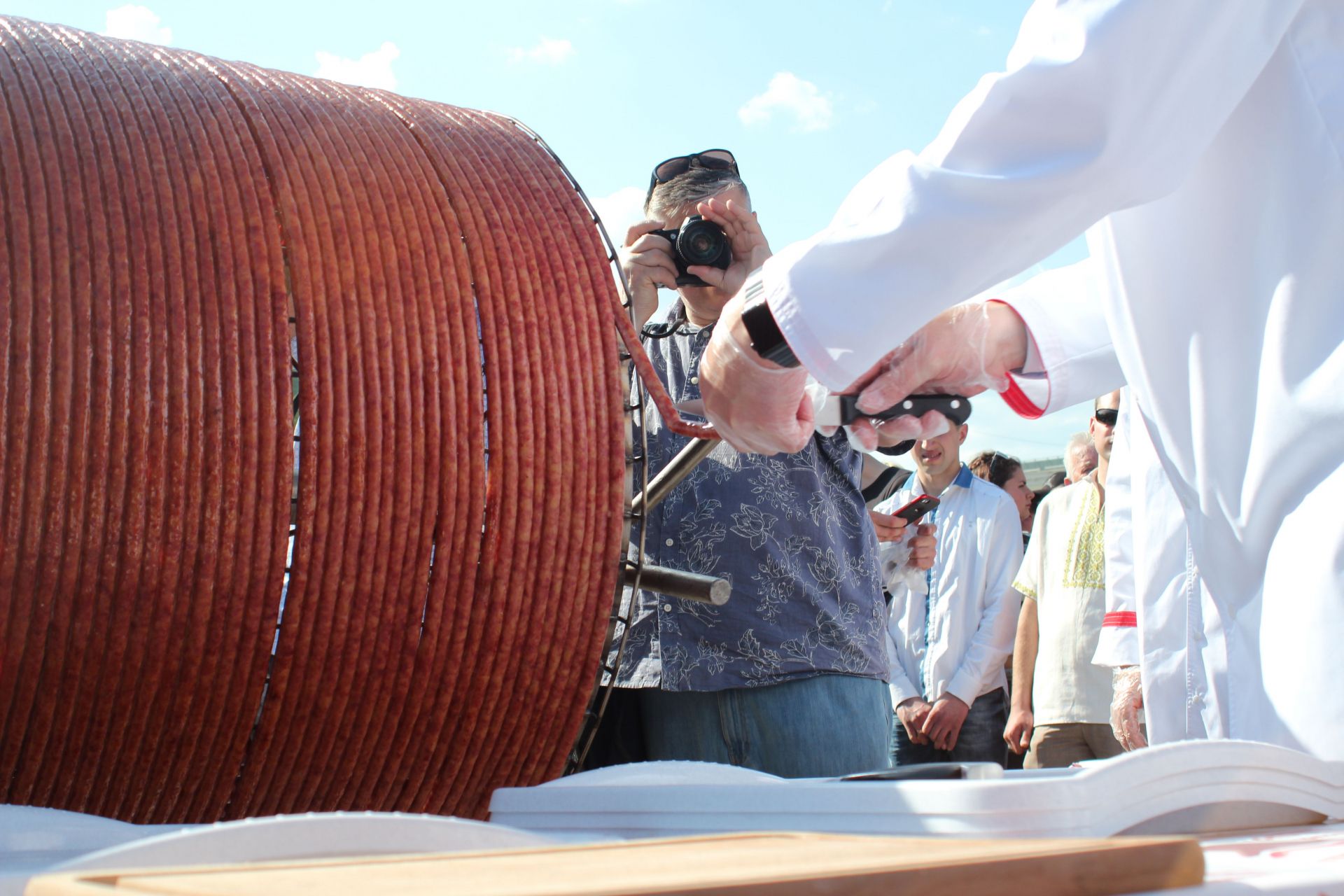 Скуштувати рекордну ковбасу хотіли всі. А дехто навіть ішов по неї вже по другому колу.