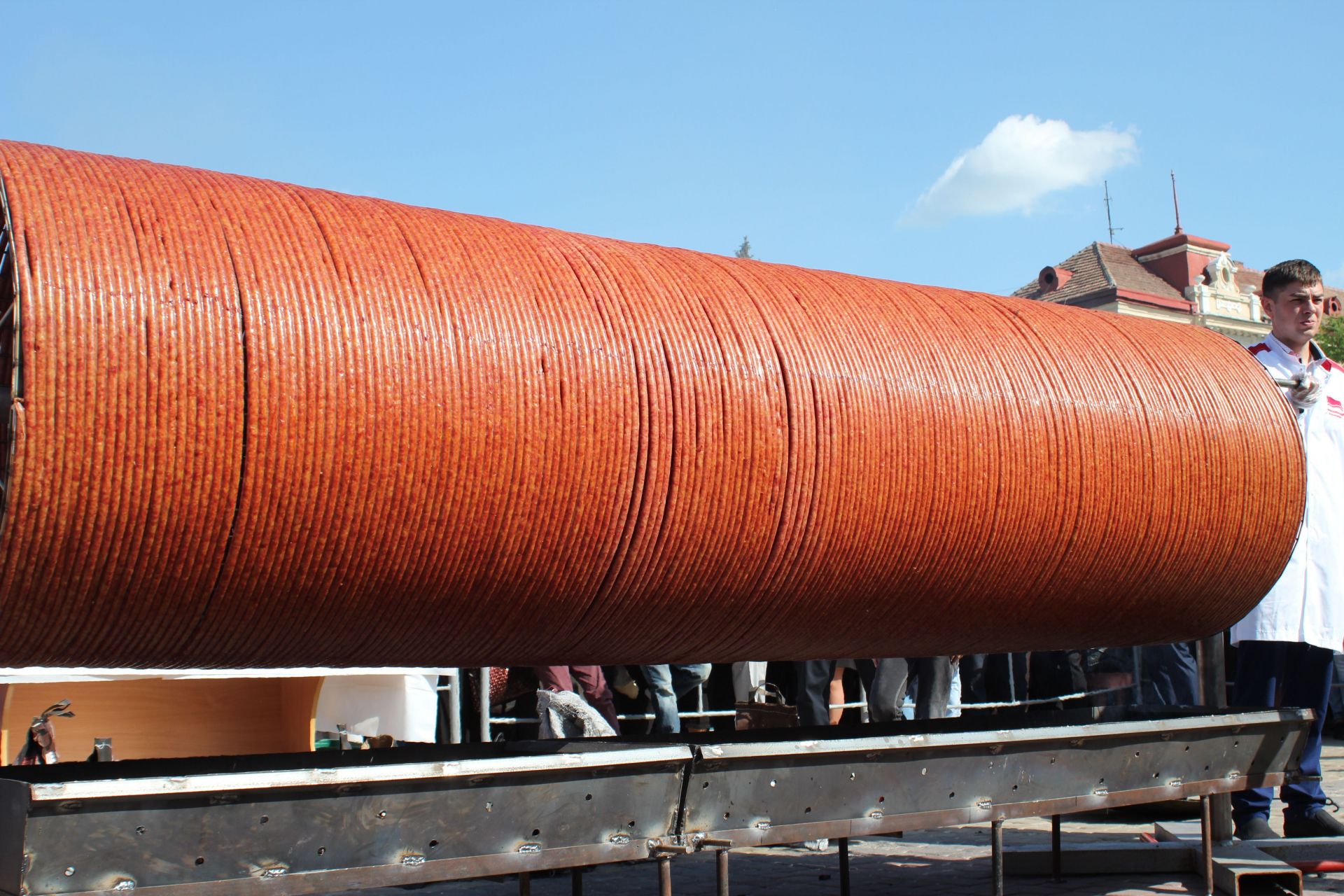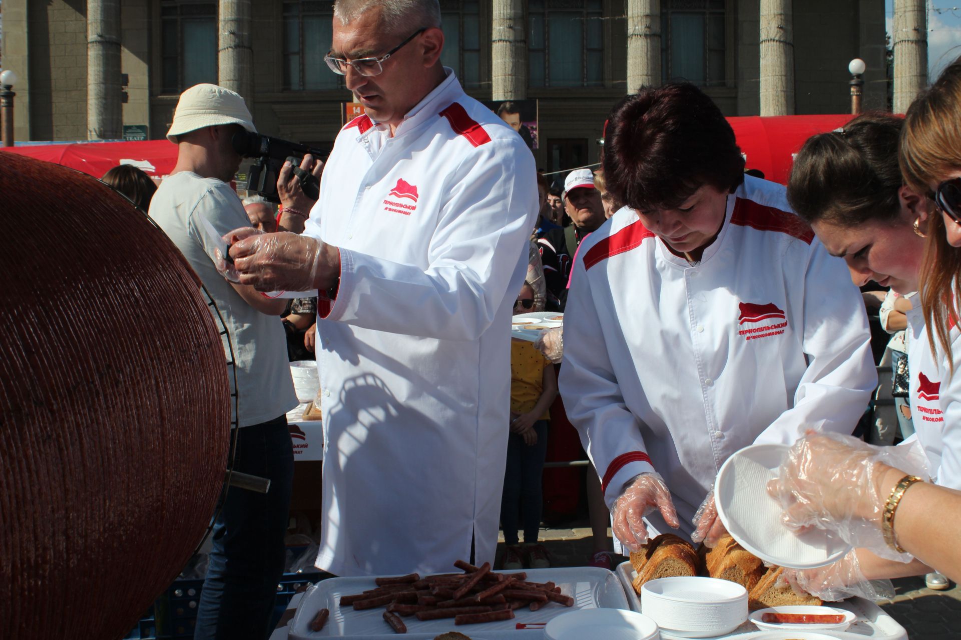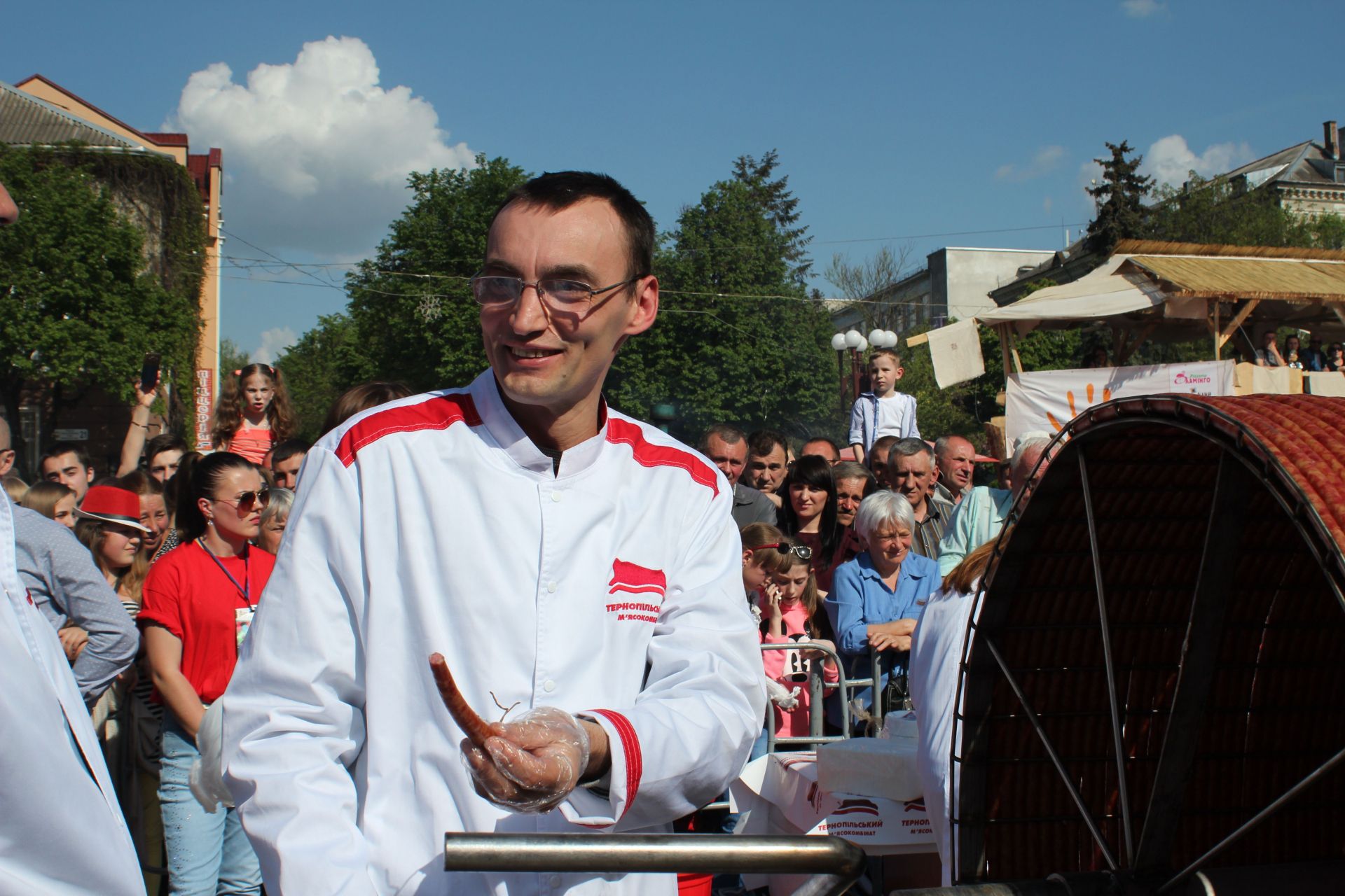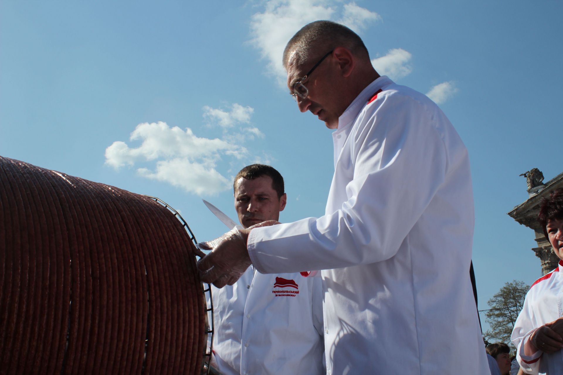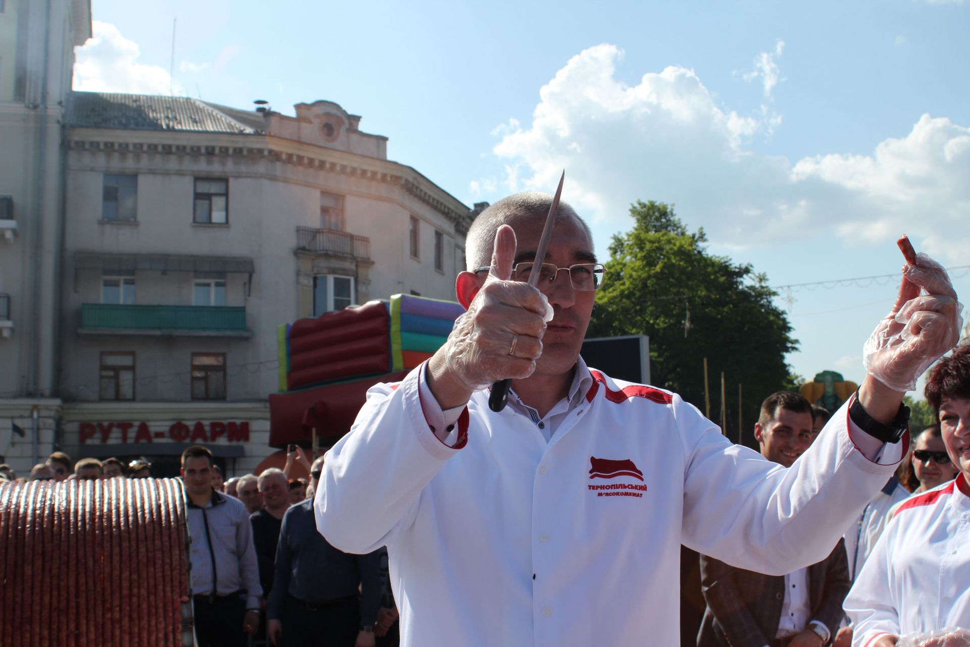 - Сьогодні титул першості з міста Черкаси, де була приготовлена 345-ти метрова ковбаса, переходить до Тернополя, - виголосила представниця Книги рекордів України. - Тому відтепер найдовша ковбаса в Україні - 547 метрів.