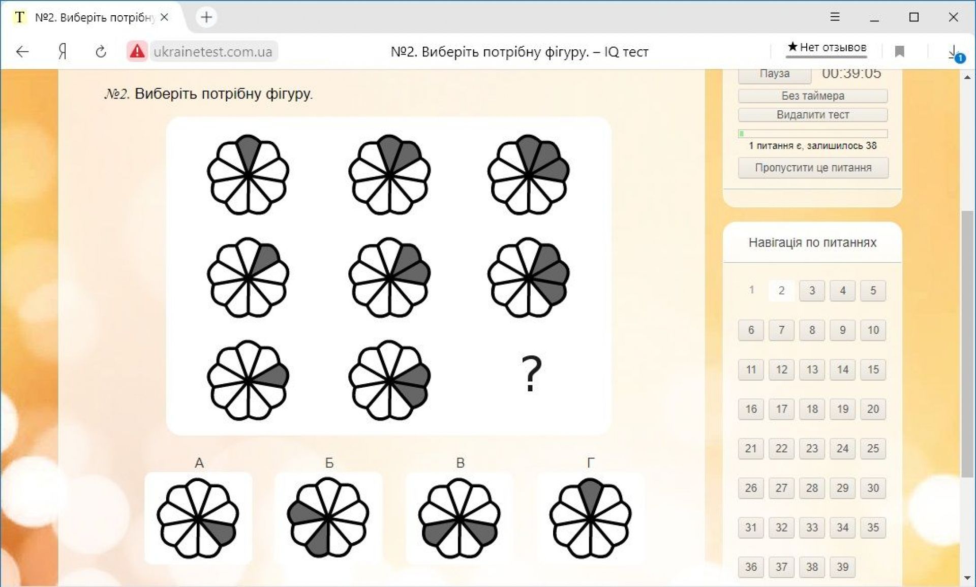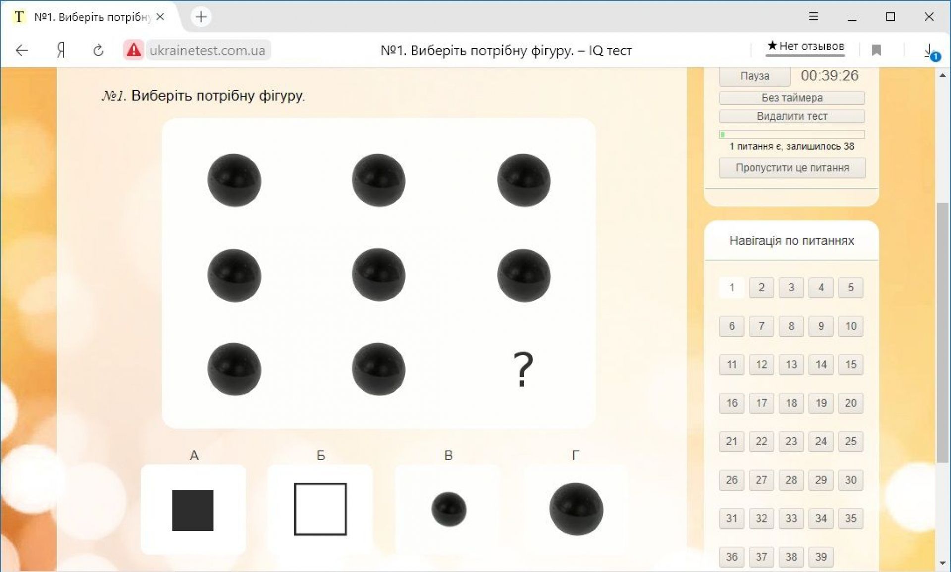 Тестів на IQ в мережі є багато. Дехто проходив їх в школі чи університеті. Чому б не перевірити свій інтелект. Даний тест дозволяє оцінити рівень кмітливості для людей будь-якого віку, статі, роду діяльності. Тут немає питань про історичні події, математичні формули чи фізичні закони. Вам доведеться лише використовувати логіку, проводити аналогії, тощо. Цей тест можуть пройти навіть діти. Хоча перші завдання здають простими, чим далі ви будете проходити його, тим складніше буде.