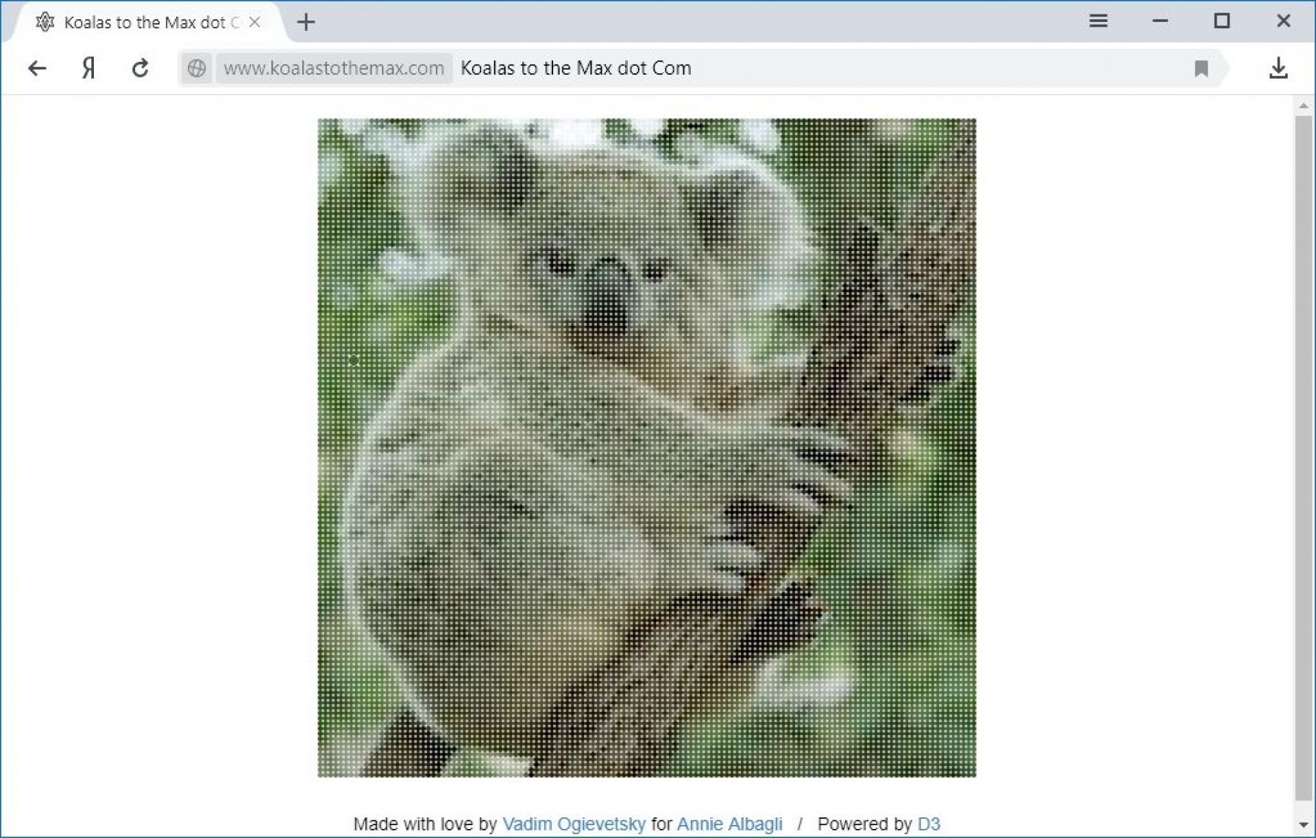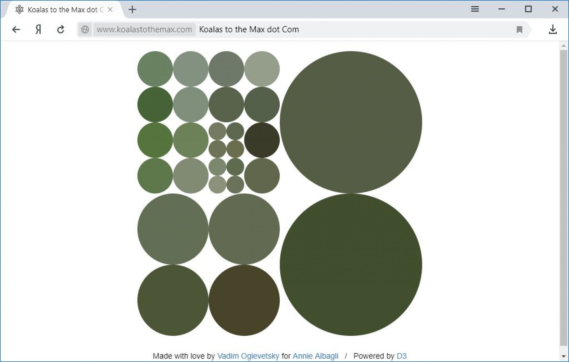 Перейшовши на ресурс, ви побачите чотири круги однакового кольору. За допомогою курсору миші ви починаєте їх дрібнити. Після розділення круга його колір змінюється. Подрібнивши круги, ви зможете побачити фотографію. Ці фотографії змінюються.
