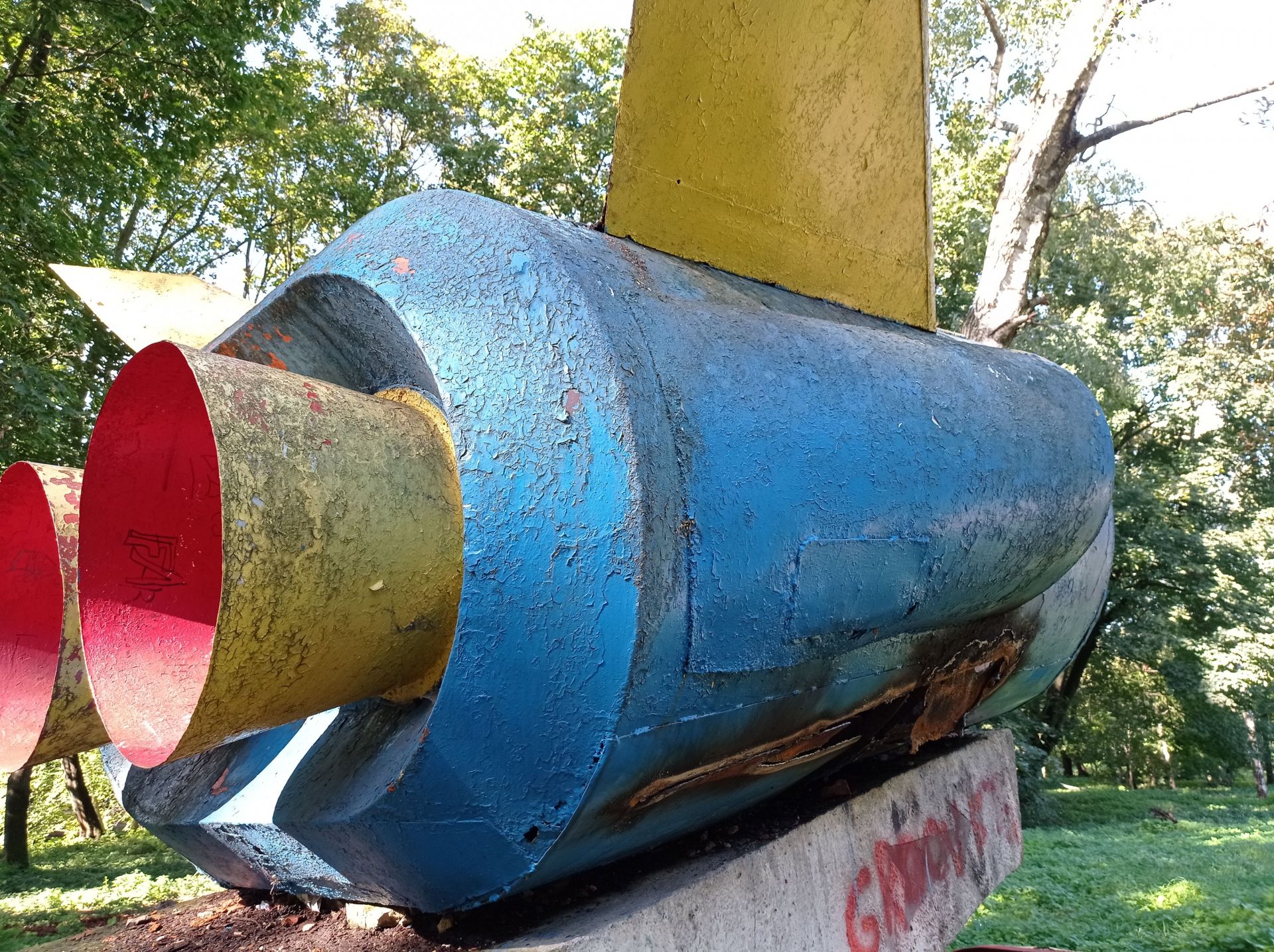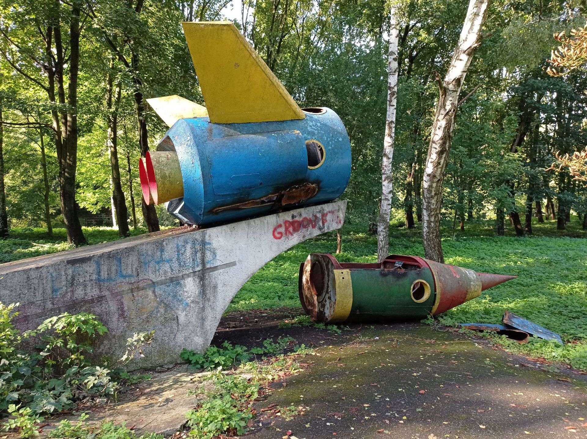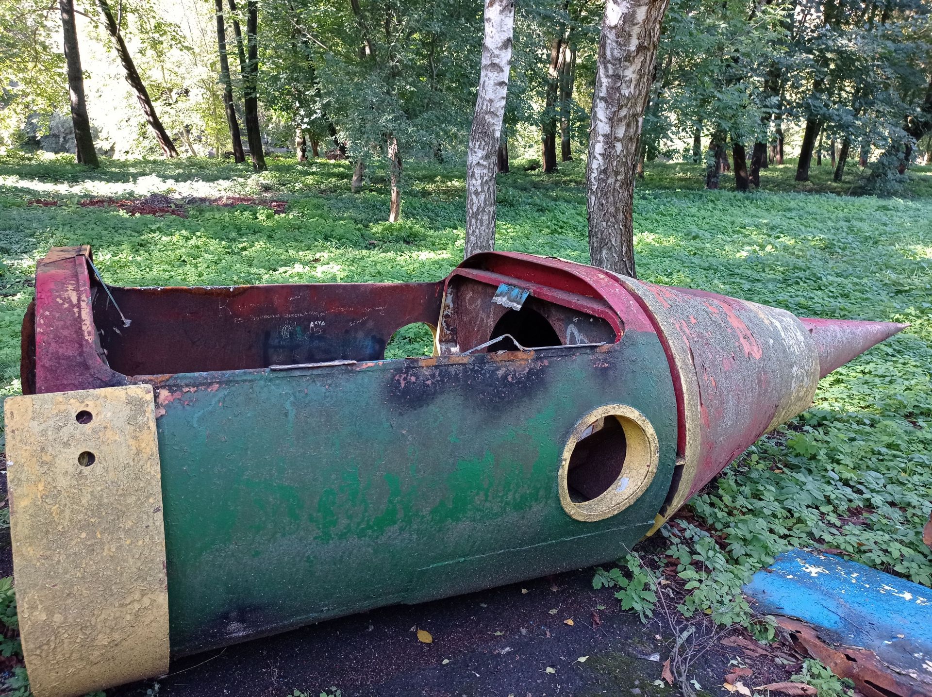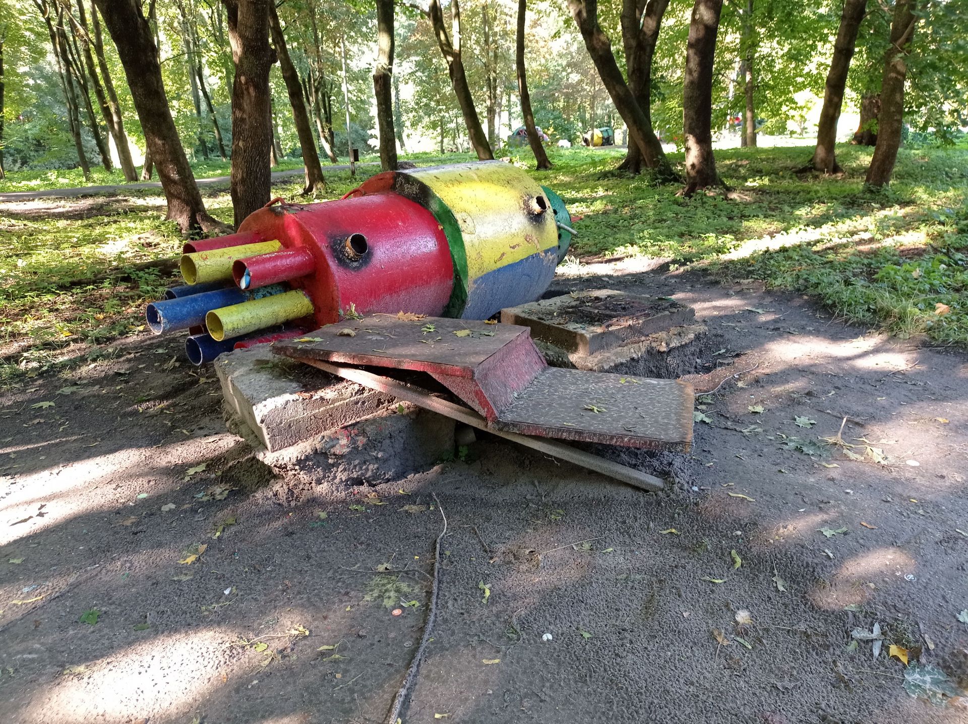 Ще залишились дві великі конструкції – одна з ракет знаходиться біля дитячого майданчика. На неї можна вилізти сходами, однак це небезпечно, оскільки вона стоїть на бетонних плитах.